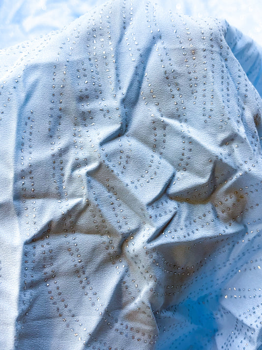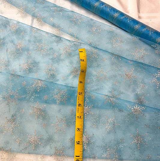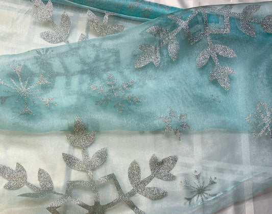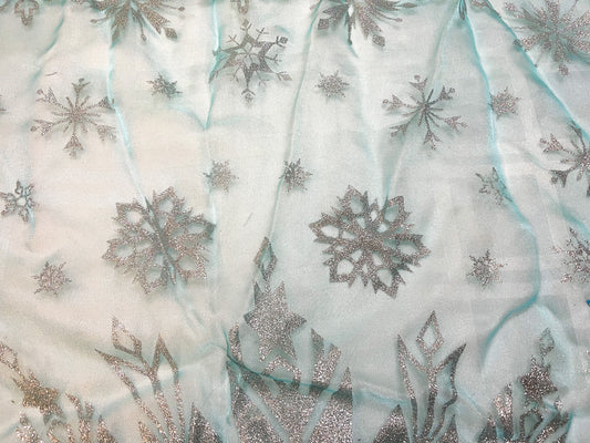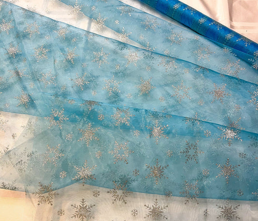 Clearance -blue with silver glitter snowflakes and crown-panel