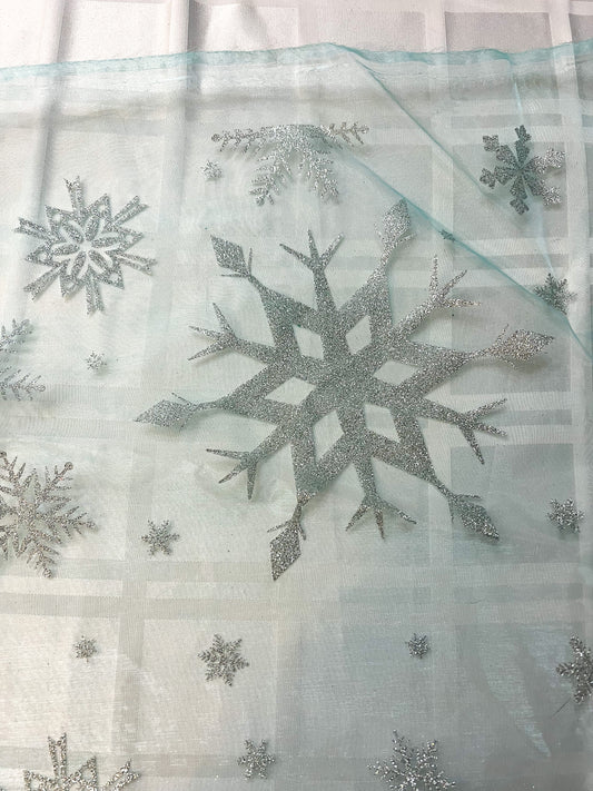 Clearance - blue with extra large silver glitter snowflakes PANEL