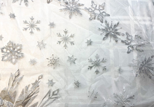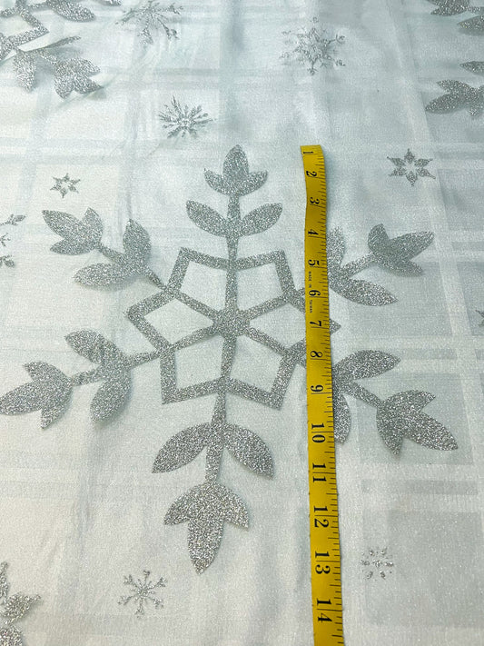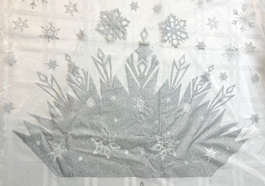 Clearance -white with silver glitter snowflakes and crown-precut panel