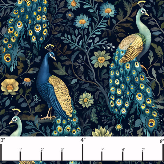 Fabric info: all fabrics are sold in half yard increments. All designs have the option to be ordered in 18 different fabric bases. The description of each base and how yardage/rolls ordering works is listed under each design. Please read carefully to order exactly what you need.