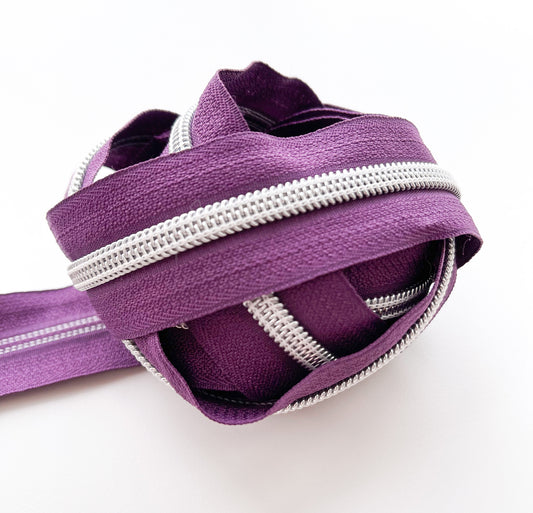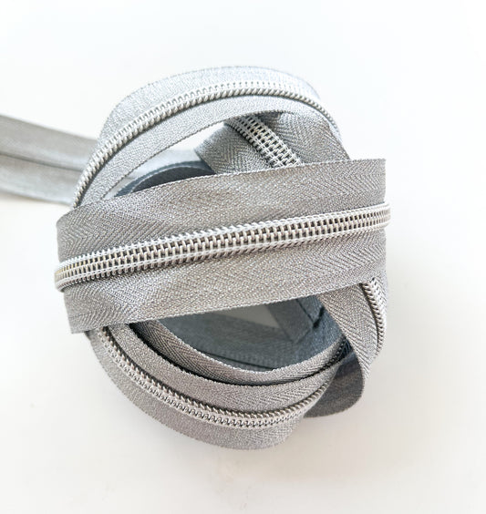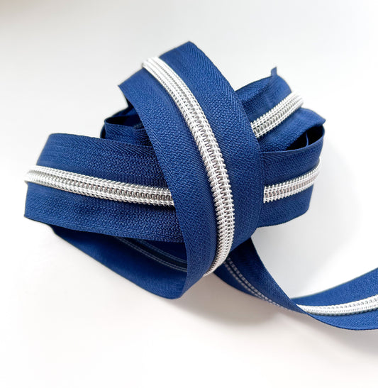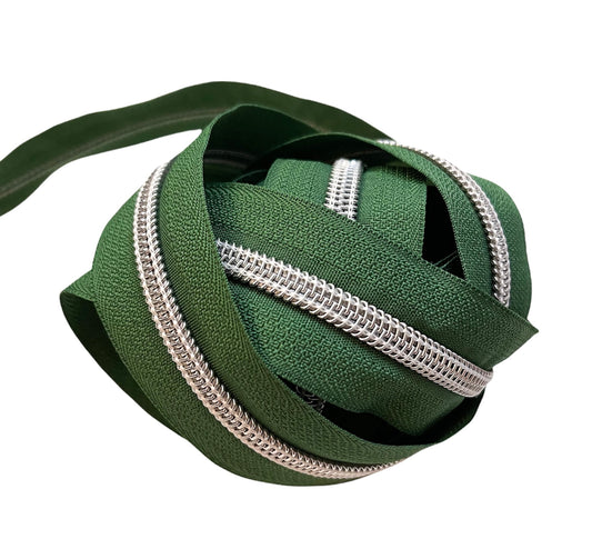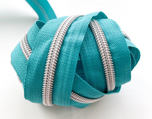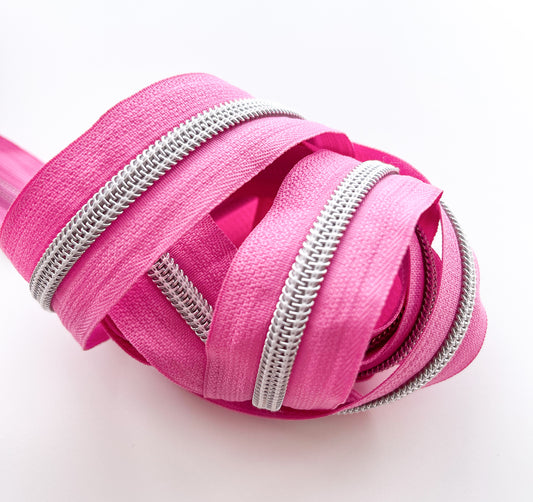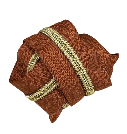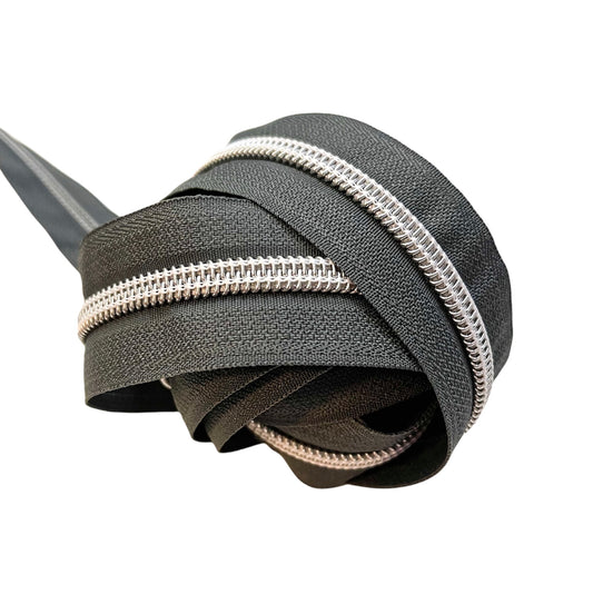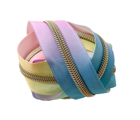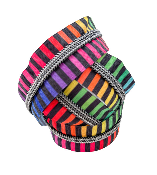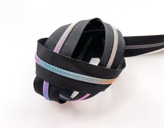 Nylon zipper tape with various colours of coil. All sold by the meter and continuous cuts