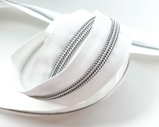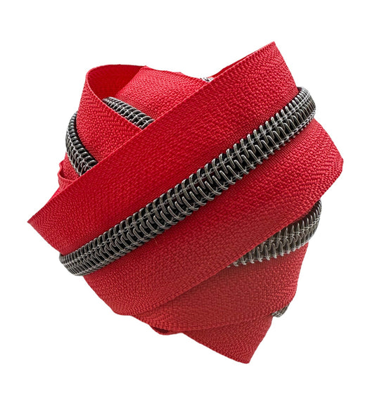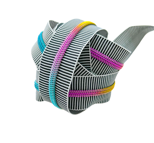 Nylon zipper tape with various colours of coil. All sold by the meter and continuous cuts