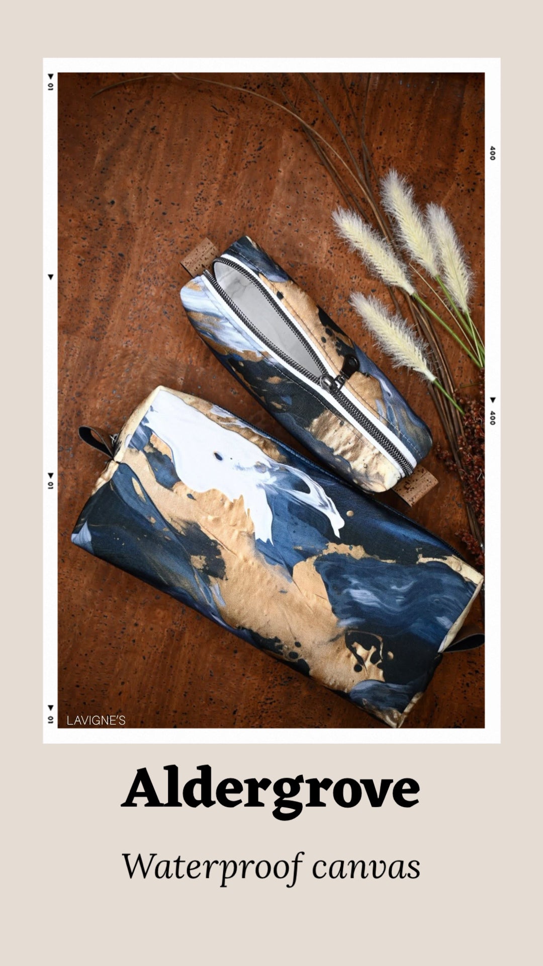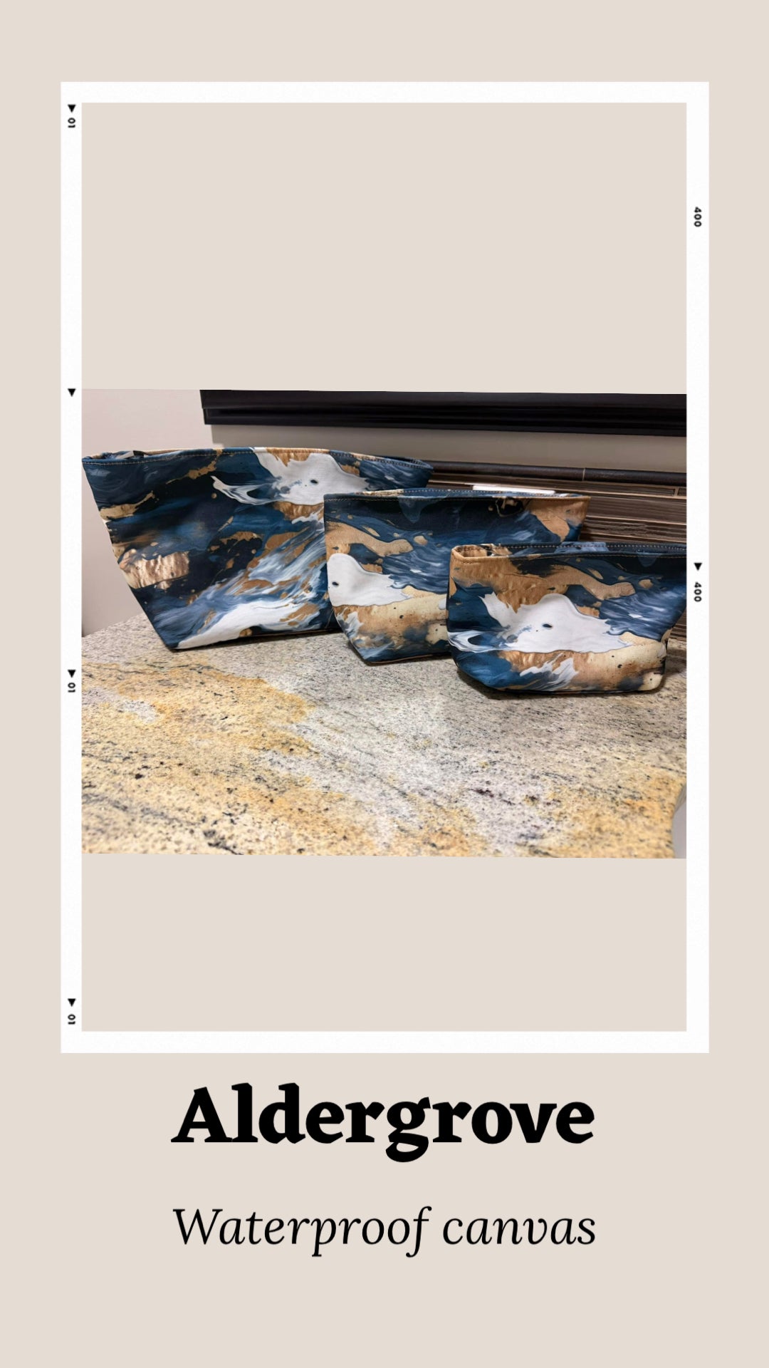 It's a mash up of 2 of the favourite bag bases: waterproof canvas and cotton canvas. This is a fabulous base that is easily pliable and the same thickness as cotton canvas. No coating on the back as the waterproof element is part of the interior weave. And best part little to no fraying. Zero stretch