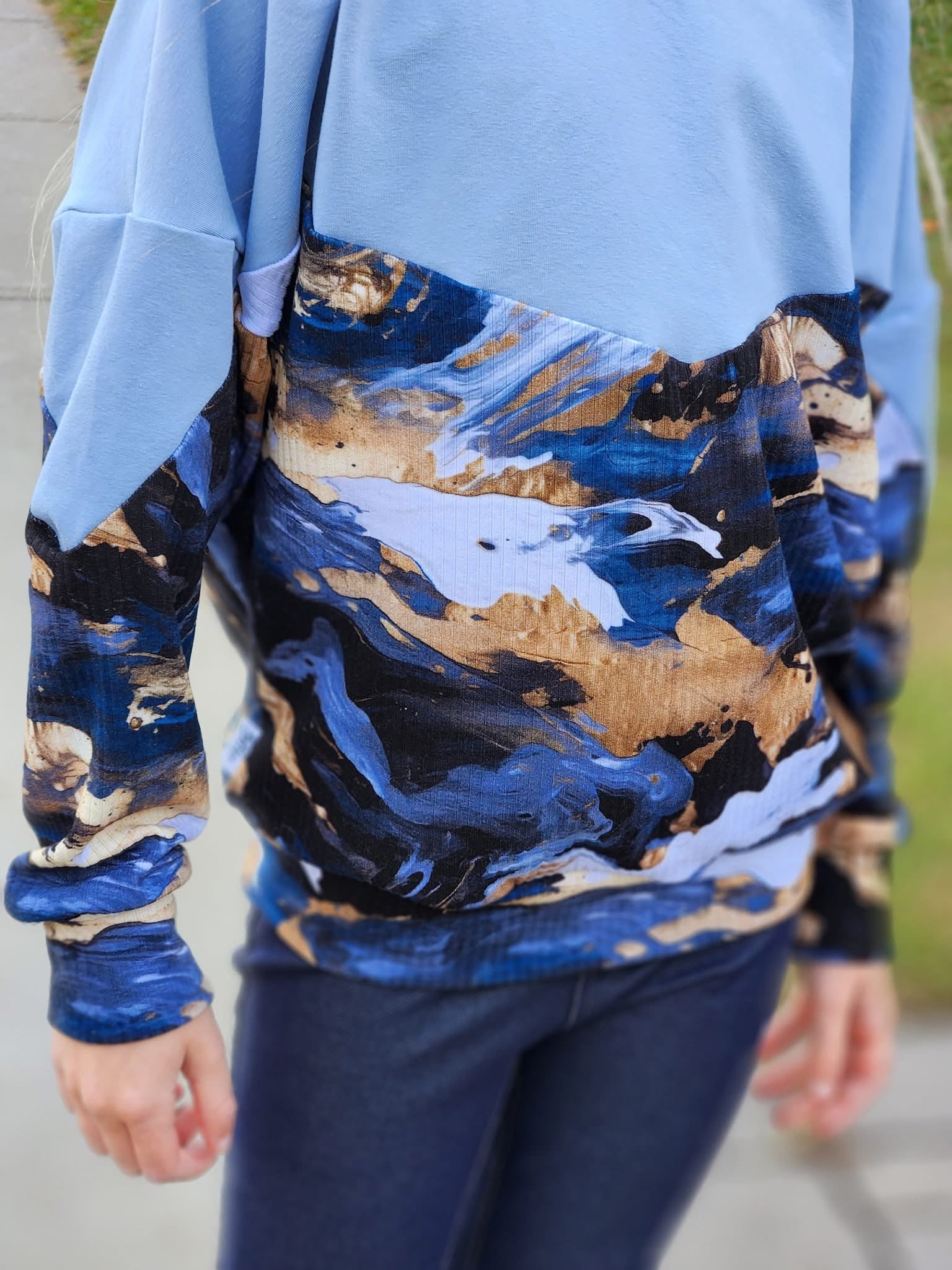 Custom printed bamboo french terry knit fabric. Perfect for a variety of clothing options it is very soft and easy to work with. 40% stretch, 4-way