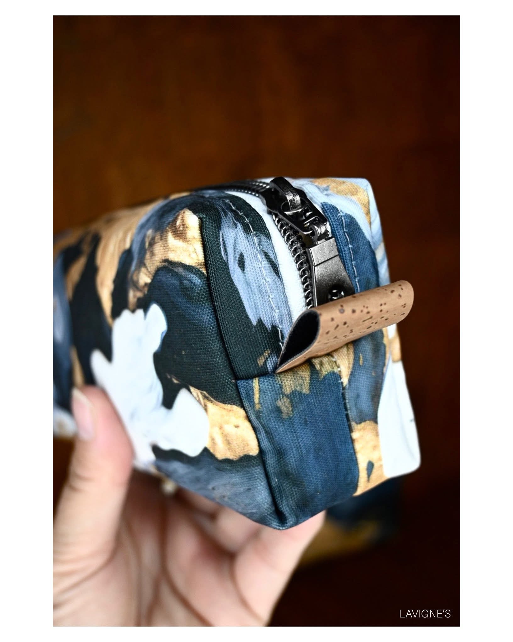 Custom printed faux leather vinyl with a smooth finish. Fabulous for purses and bags of all types and sizes. Waterproof and durable. Cuts beautifully with scissors or a rotary blade. This vinyl is very similar to cork for thickness and flexibility. A domestic machine can sew through it. While microtex needles are recommended, it was tested with universal ones with no issues. Do not pin vinyl as holes will be permanent. Instead use clips.