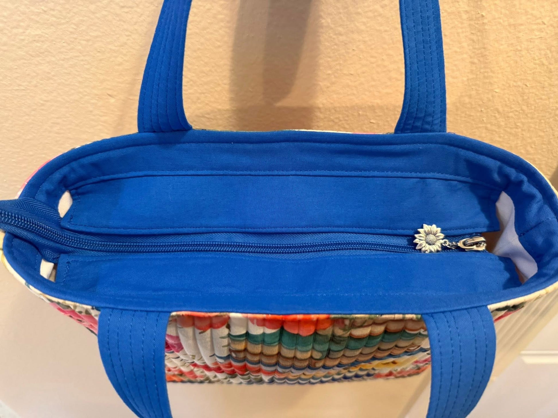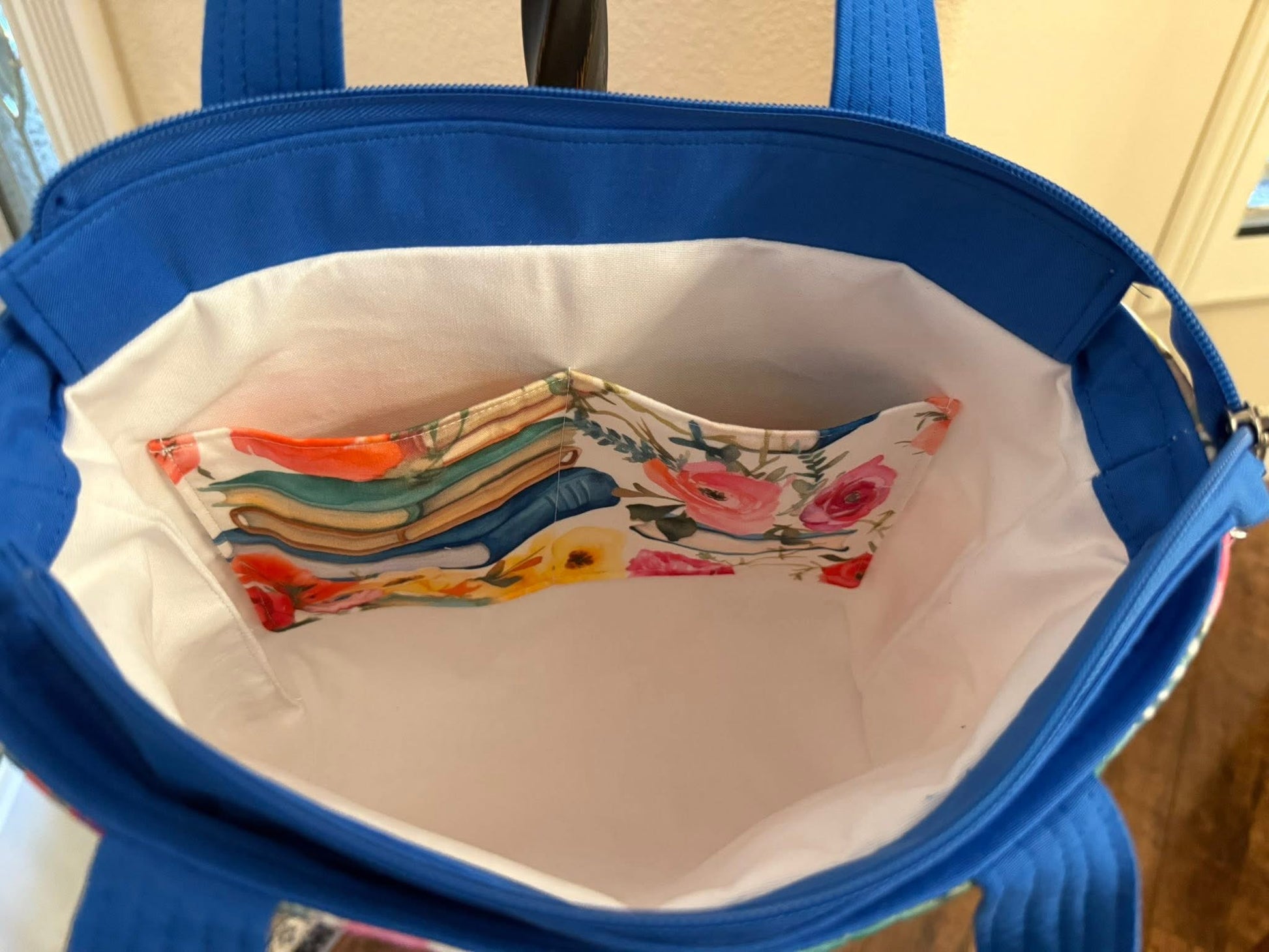 A brand new bag making base that is 100% waterproof, can be ironed and doesn’t fray. It’s lightweight and flexible. Not too thick but not too thin. Easily add interfacing, cuts with no problem and can be sewn with a universal needle and domestic machine. A bit slippery but clips hold it in place no problem. Zero stretch