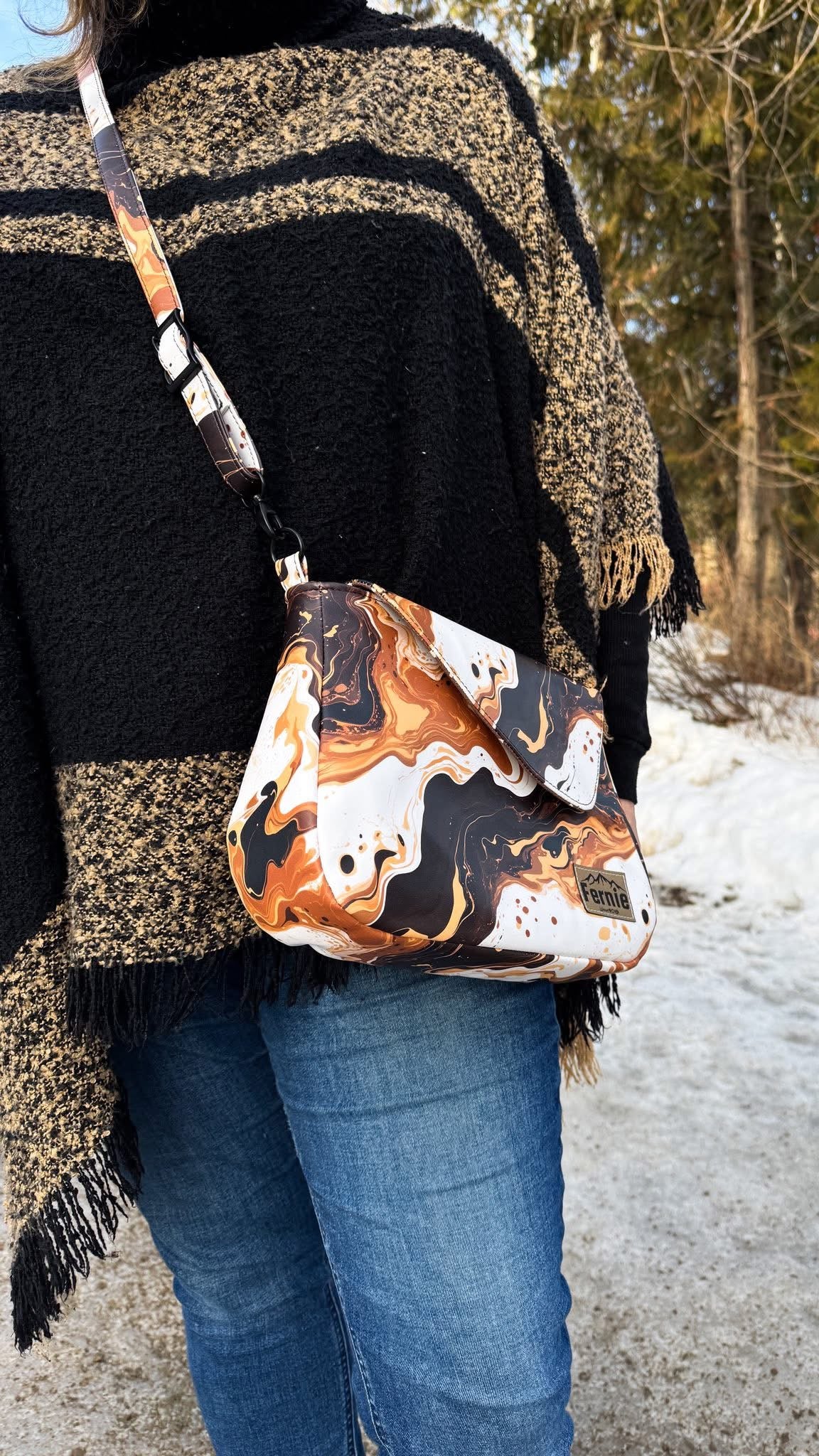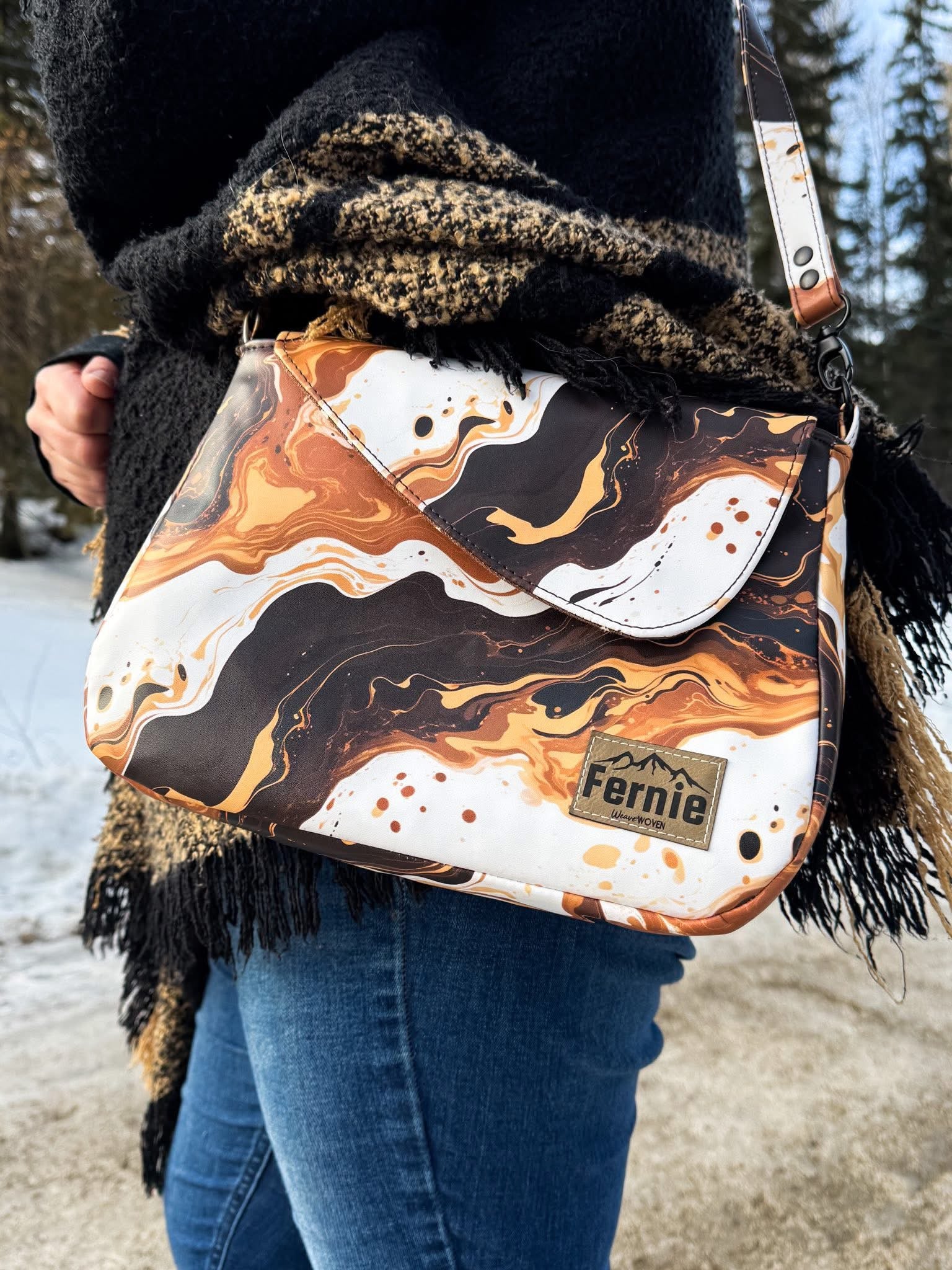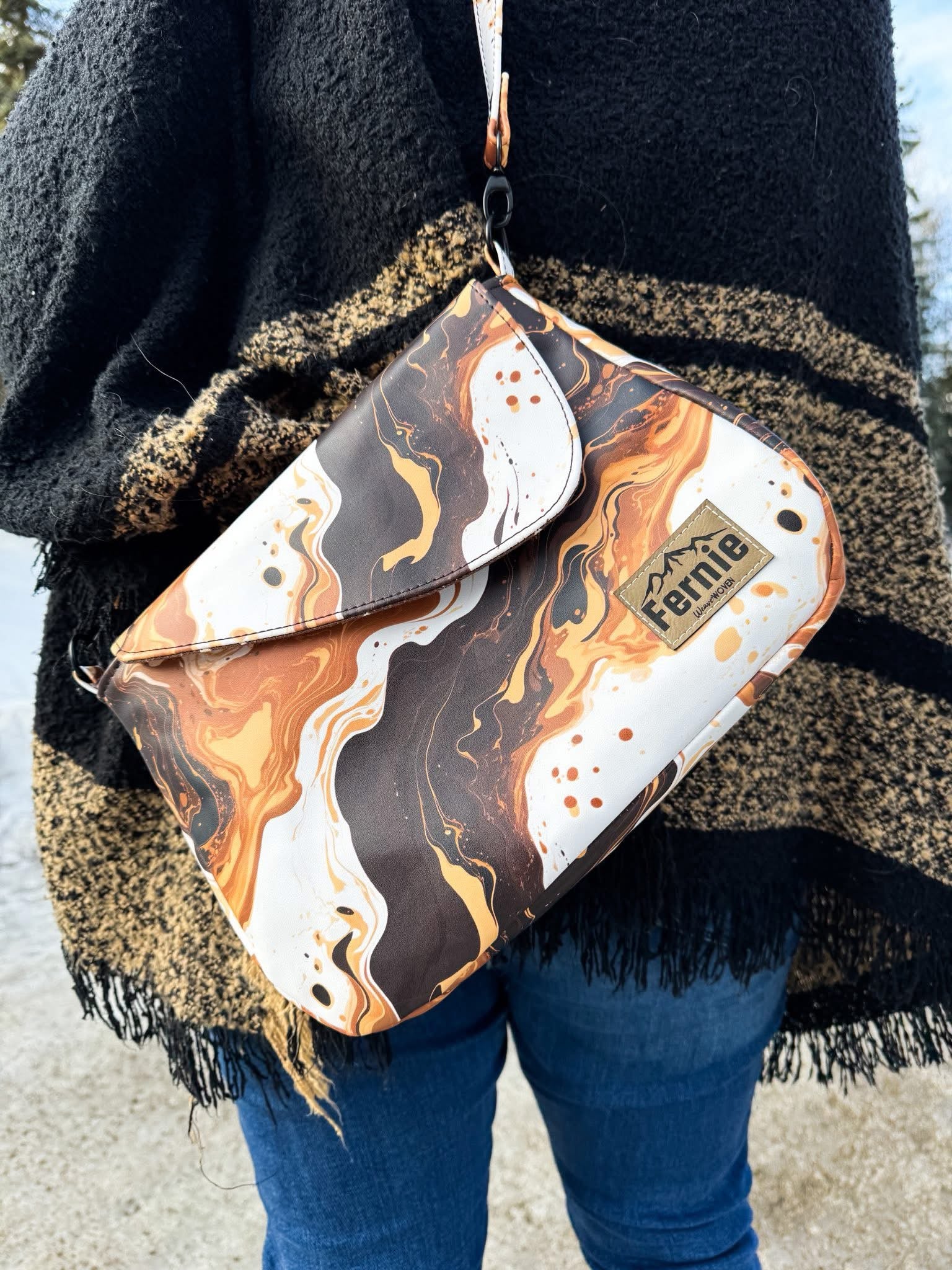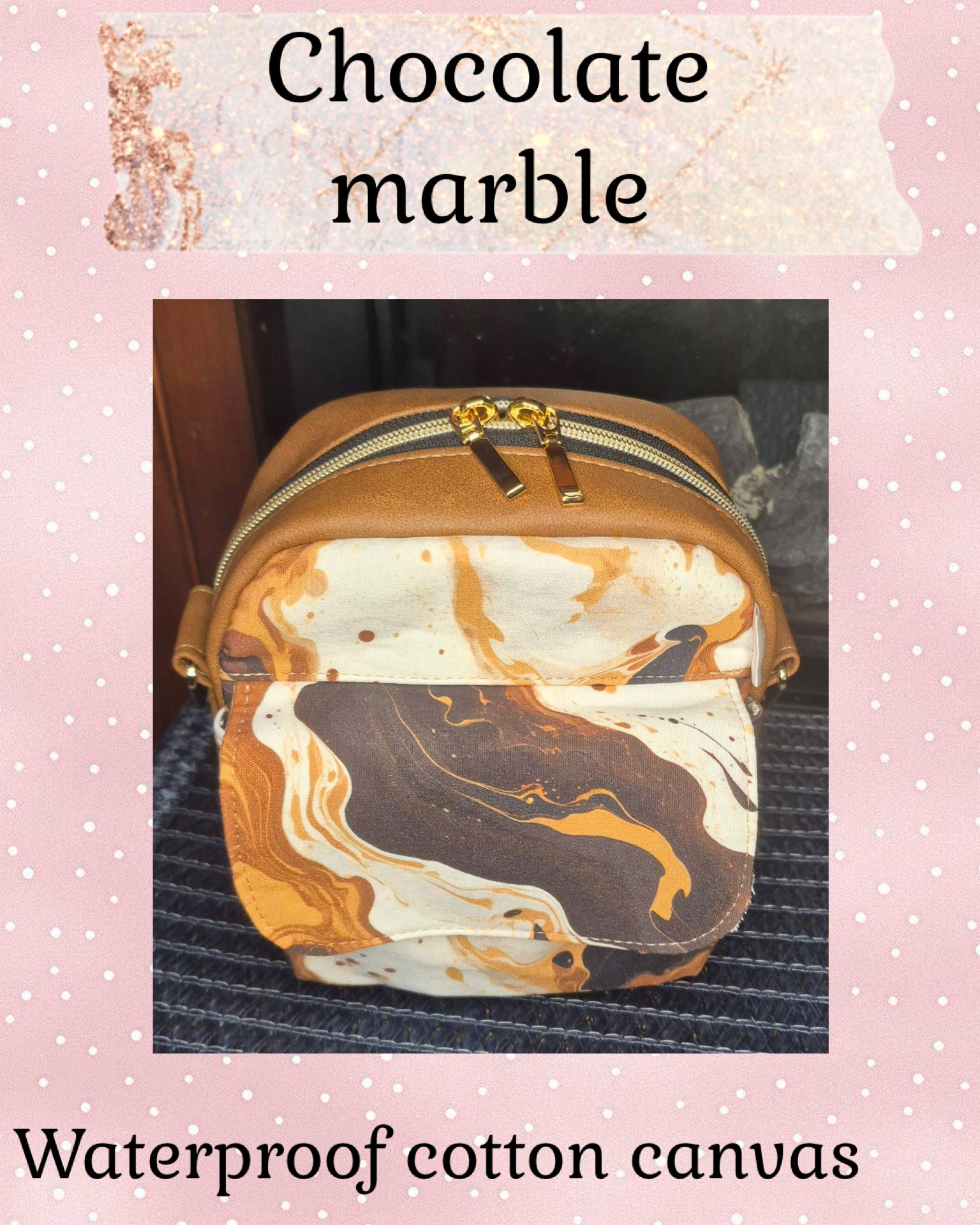 Custom printed waterproof canvas will change your bag making game. Durable for the exterior or interior of bags, this canvas is flexible and not too thick but not too thin. This is considered to be a medium weight fabric. Can be ironed just be sure to use your synthetic setting. The back of this product is white. Please do not be alarmed as this product will fray if moved around a lot. Interfacing or zigzag stitching the edges will help
