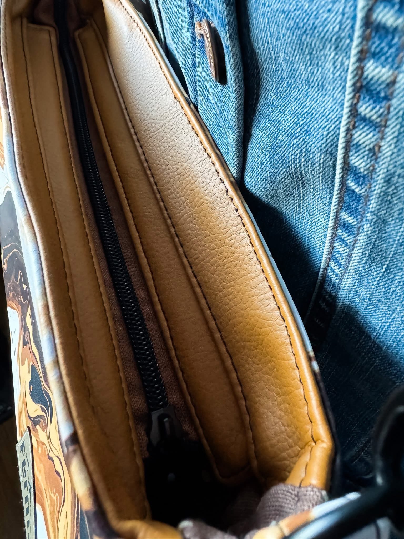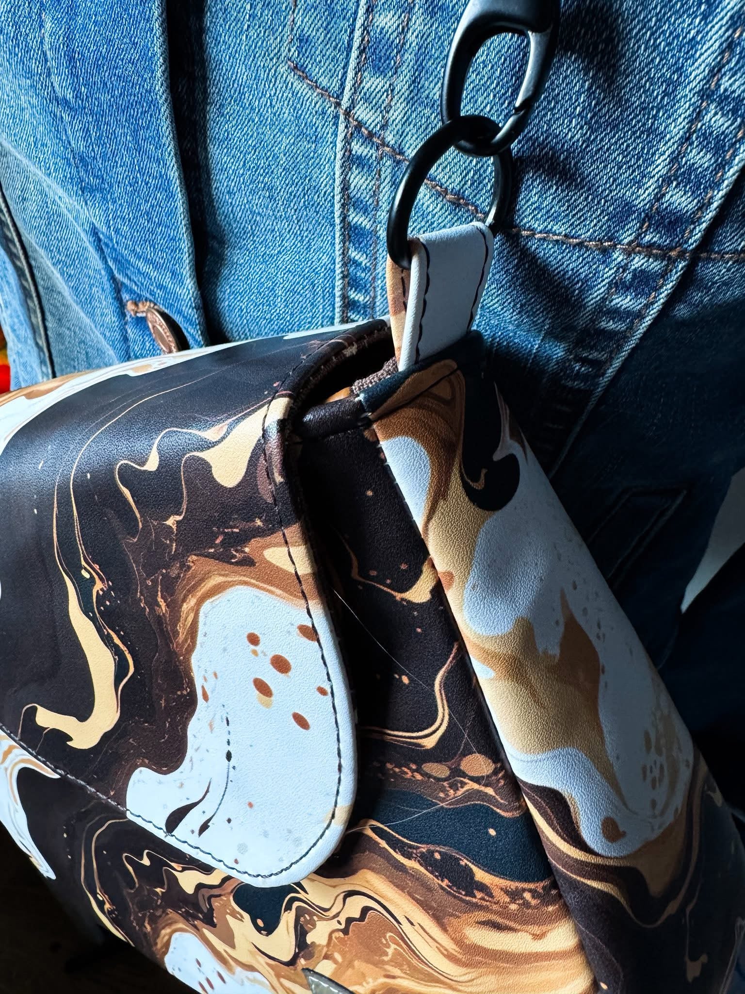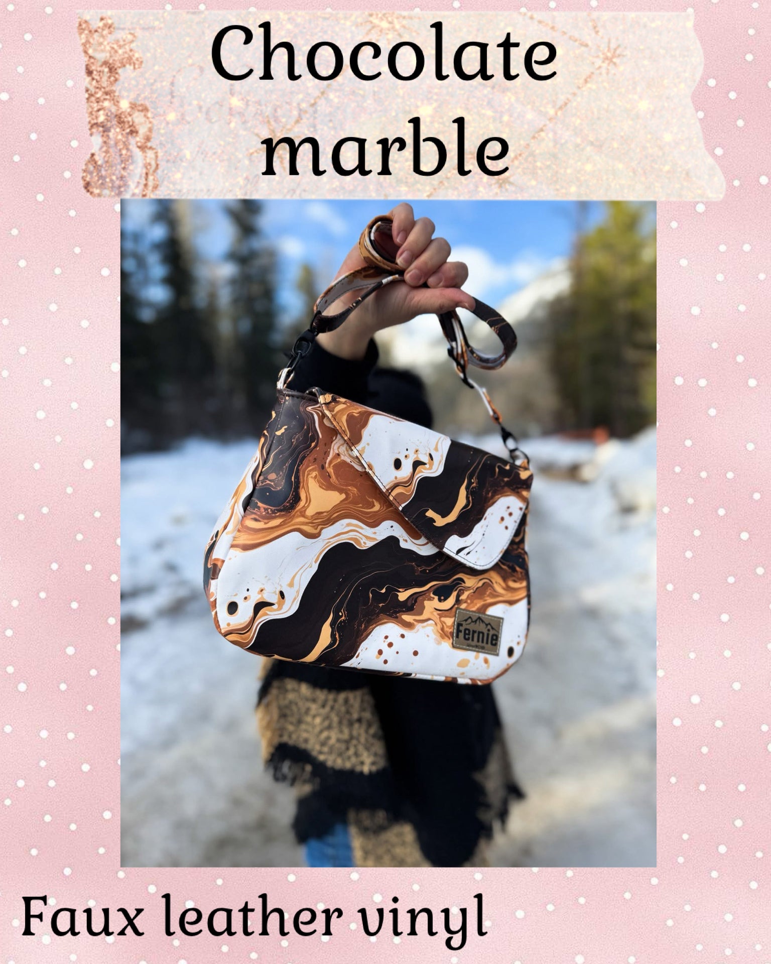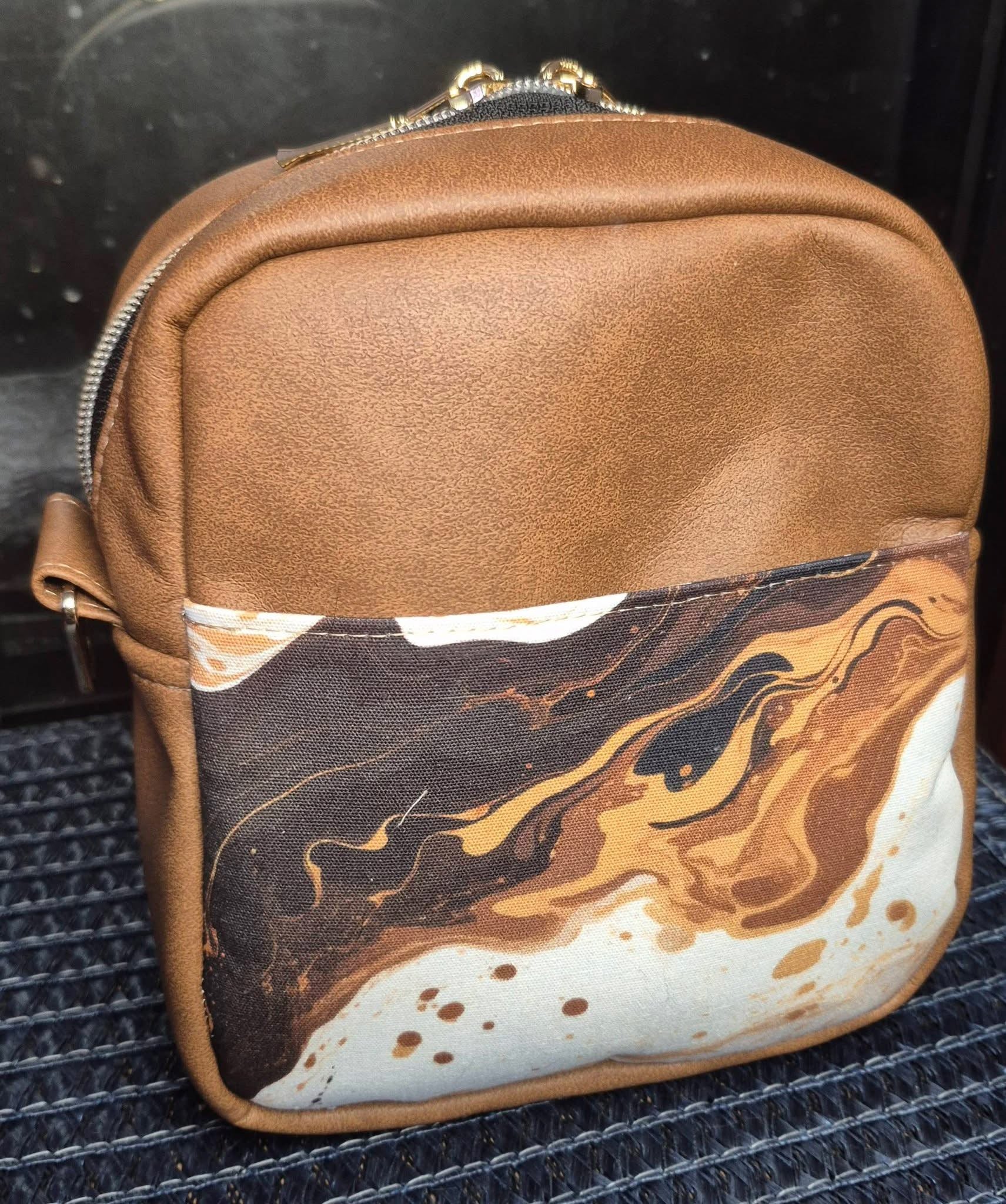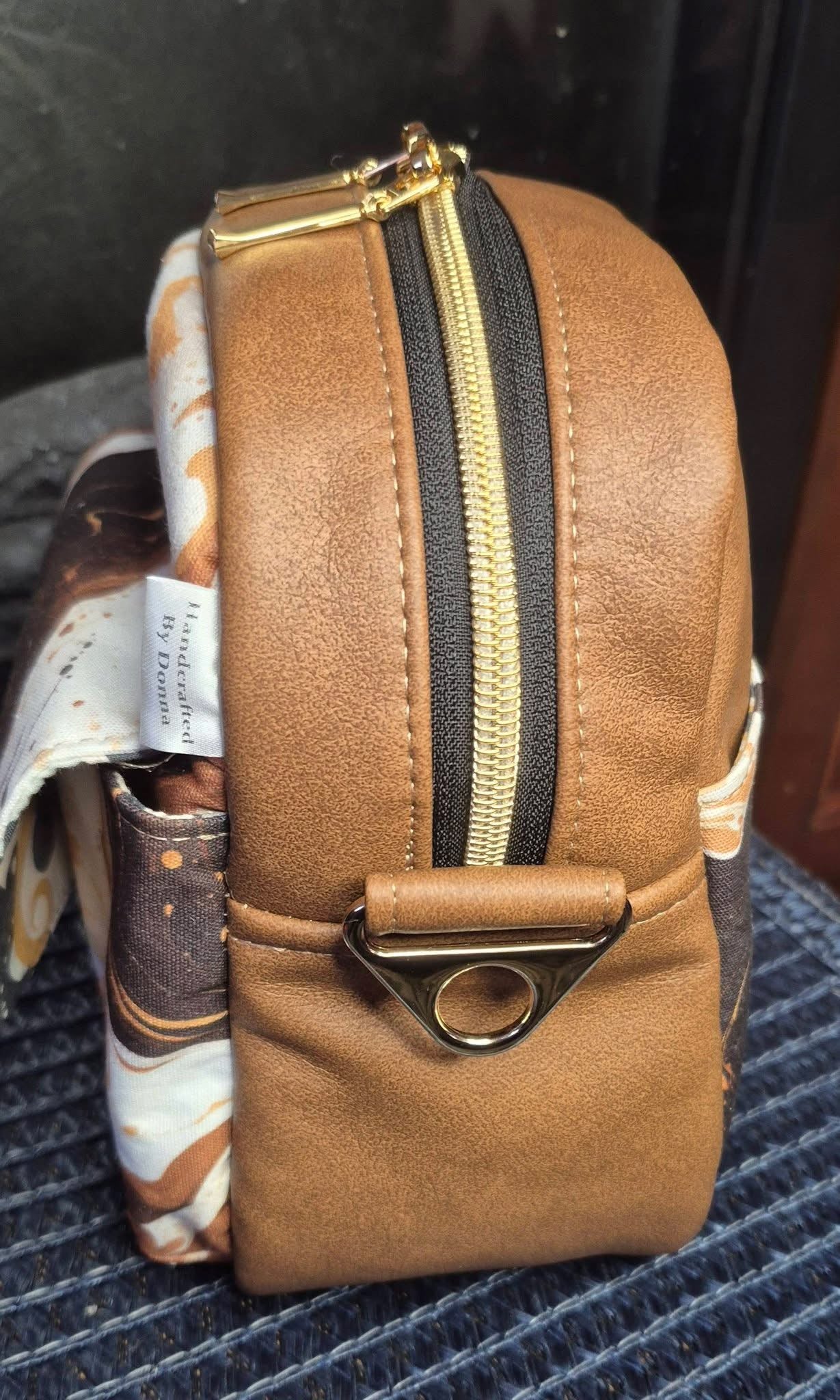 Custom printed faux leather vinyl with a smooth finish. Fabulous for purses and bags of all types and sizes. Waterproof and durable. Cuts beautifully with scissors or a rotary blade. This vinyl is very similar to cork for thickness and flexibility. A domestic machine can sew through it. While microtex needles are recommended, it was tested with universal ones with no issues. Do not pin vinyl as holes will be permanent. Instead use clips.