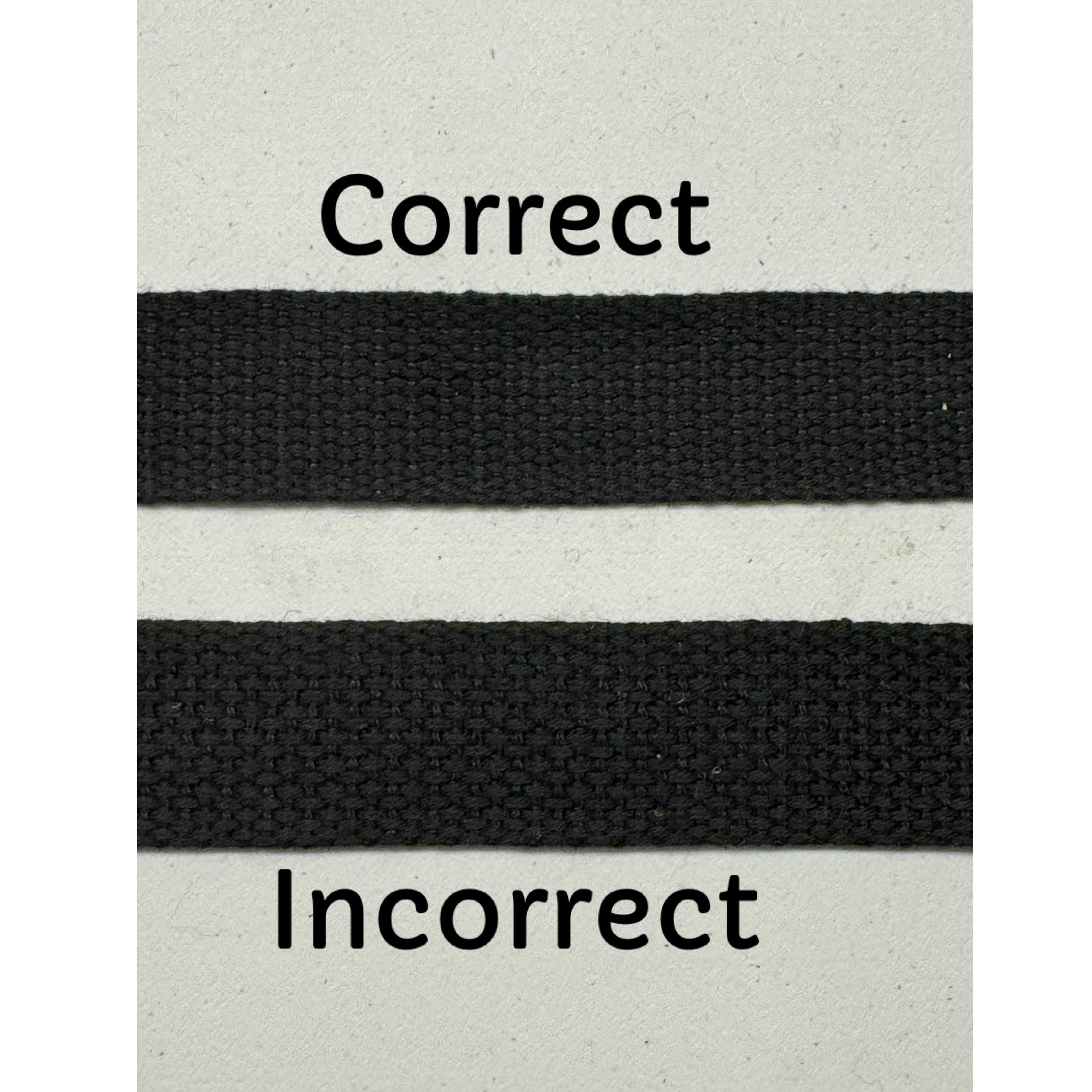 This webbing was sent to me by a supplier but I wasn’t happy with it. Compared to my other webbing I carry I feel the weave is slightly too loose. It can still be used for bag making but might have more stretch than my other webbings. Otherwise it’s perfectly fine.
