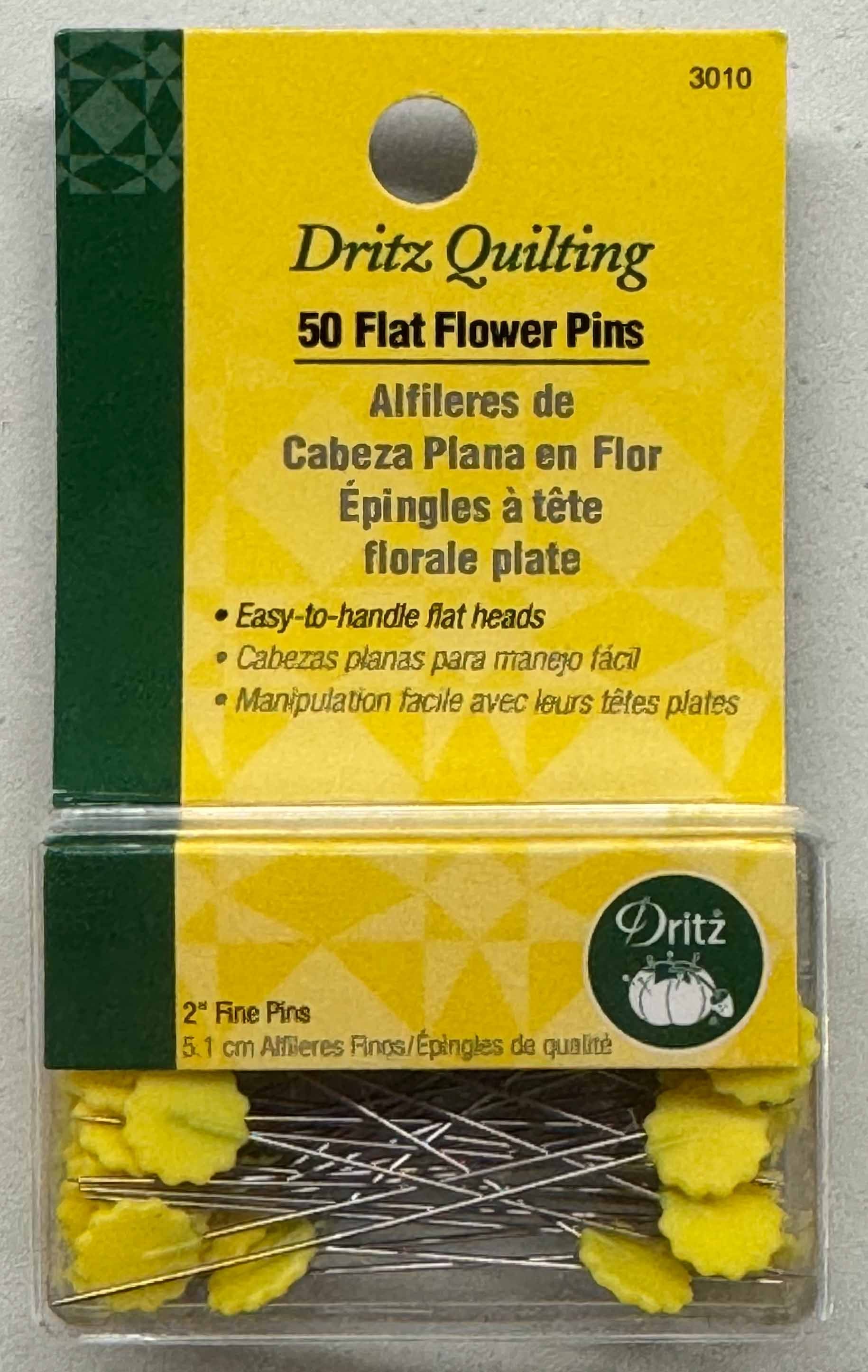 Fine pins with easy-to-handle flat heads in yellow flower shape and sharpe