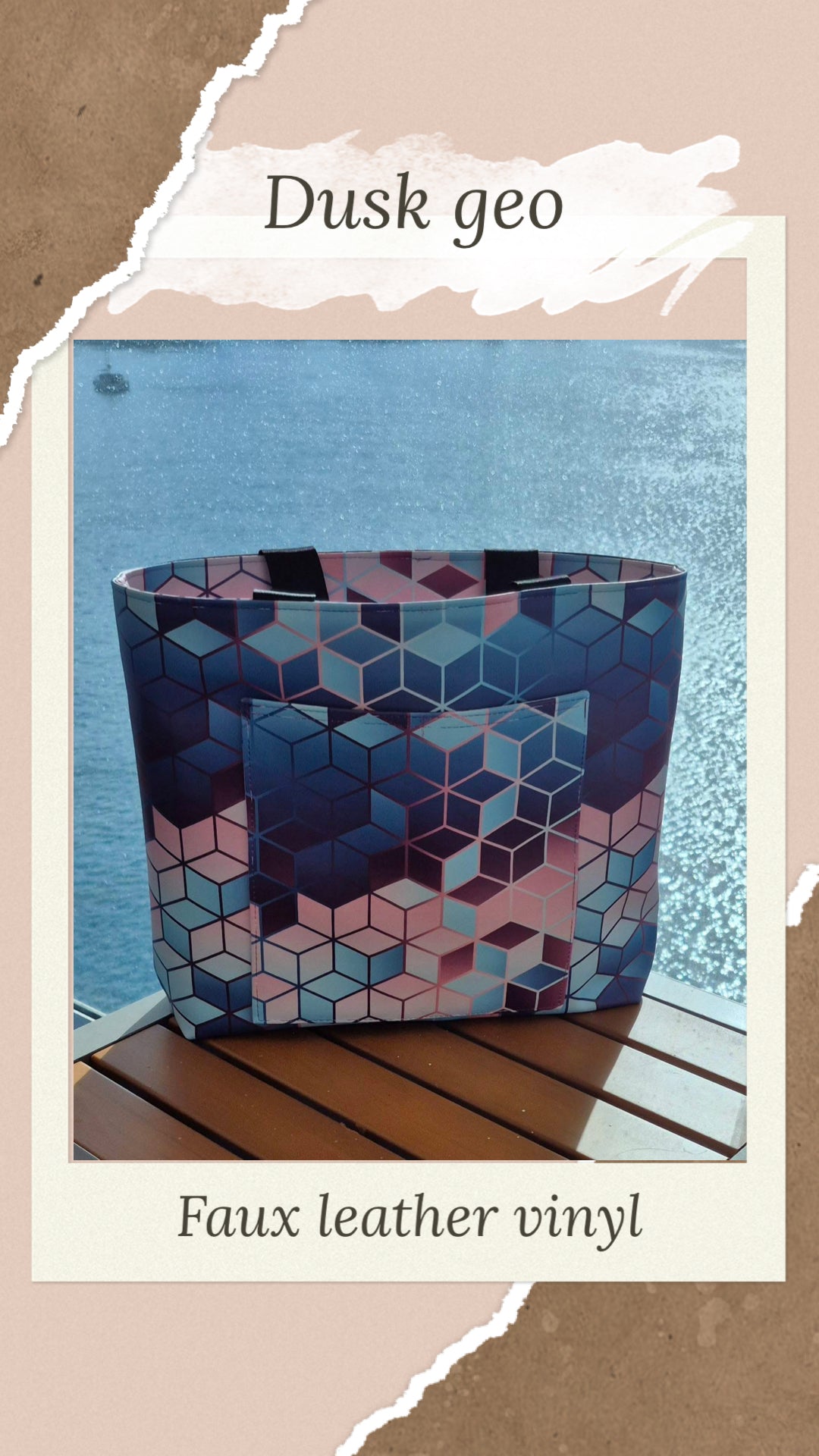 Custom printed faux leather vinyl with a smooth finish. Fabulous for purses and bags of all types and sizes. Waterproof and durable. Cuts beautifully with scissors or a rotary blade. This vinyl is very similar to cork for thickness and flexibility. A domestic machine can sew through it. While microtex needles are recommended, it was tested with universal ones with no issues. Do not pin vinyl as holes will be permanent. Instead use clips.