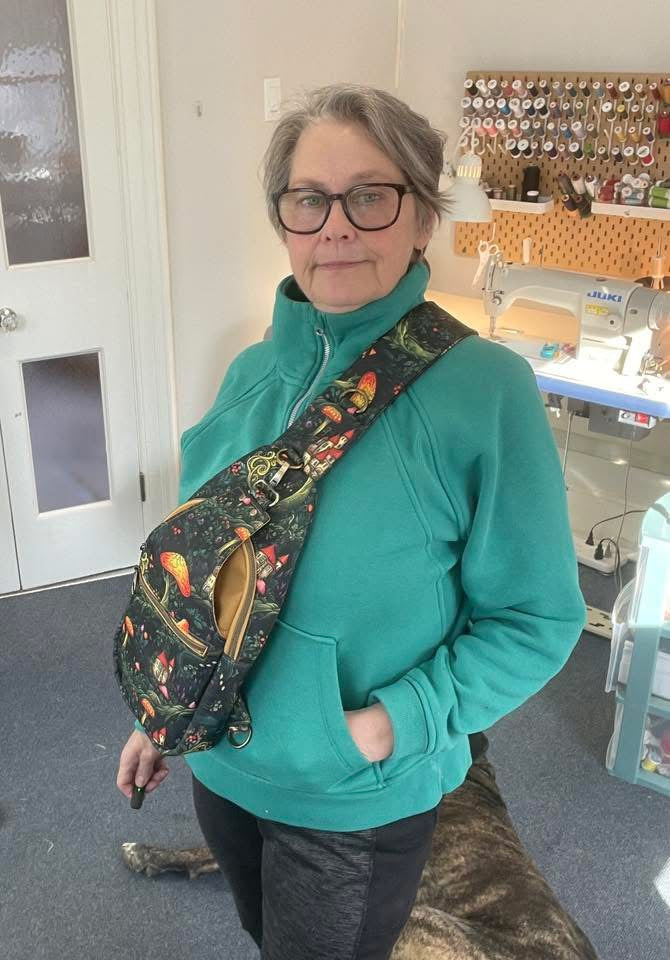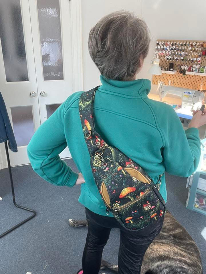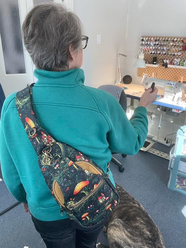 A brand new bag making base that is 100% waterproof, can be ironed and doesn’t fray. It’s lightweight and flexible. Not too thick but not too thin. Easily add interfacing, cuts with no problem and can be sewn with a universal needle and domestic machine. A bit slippery but clips hold it in place no problem. Zero stretch