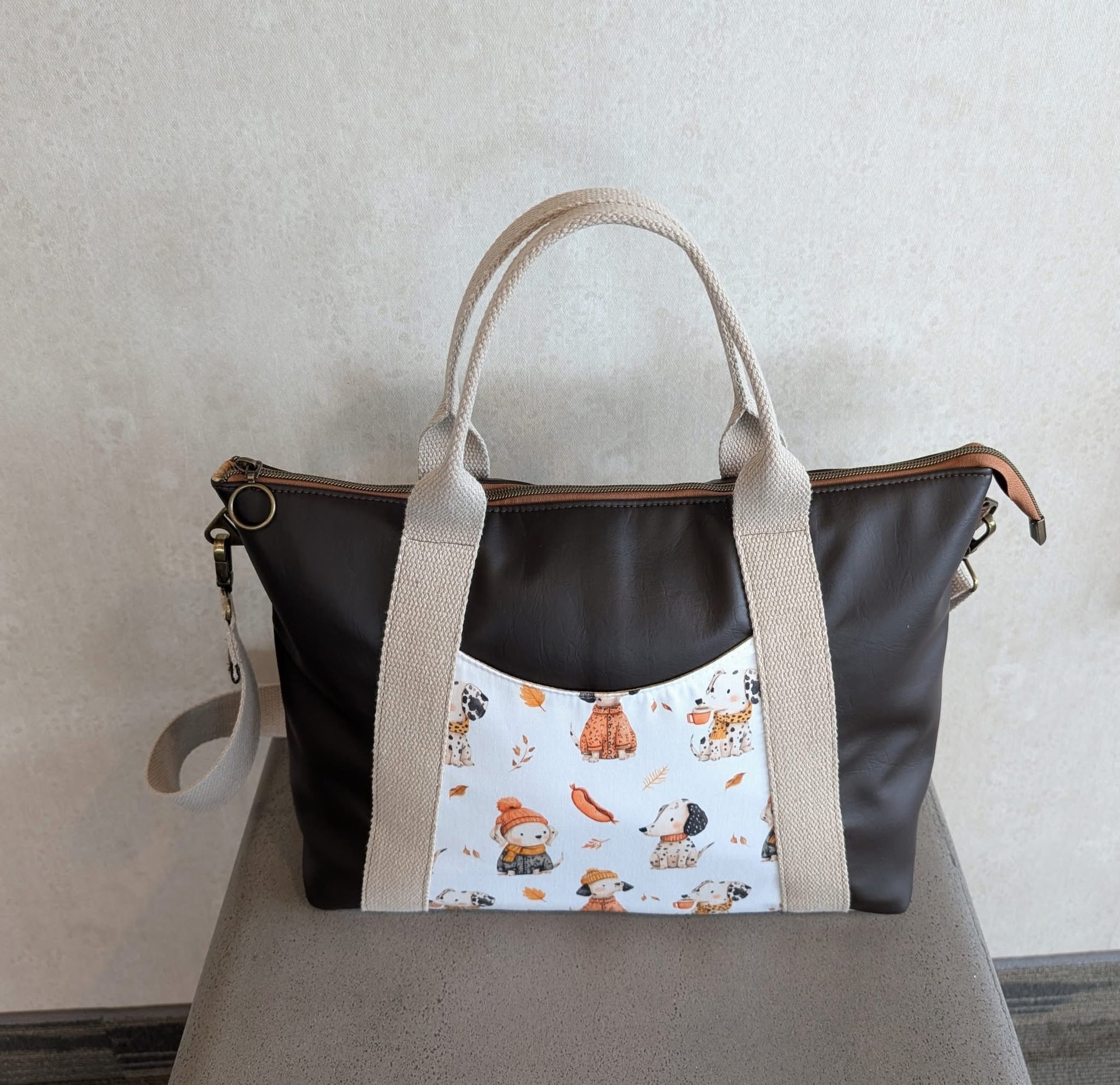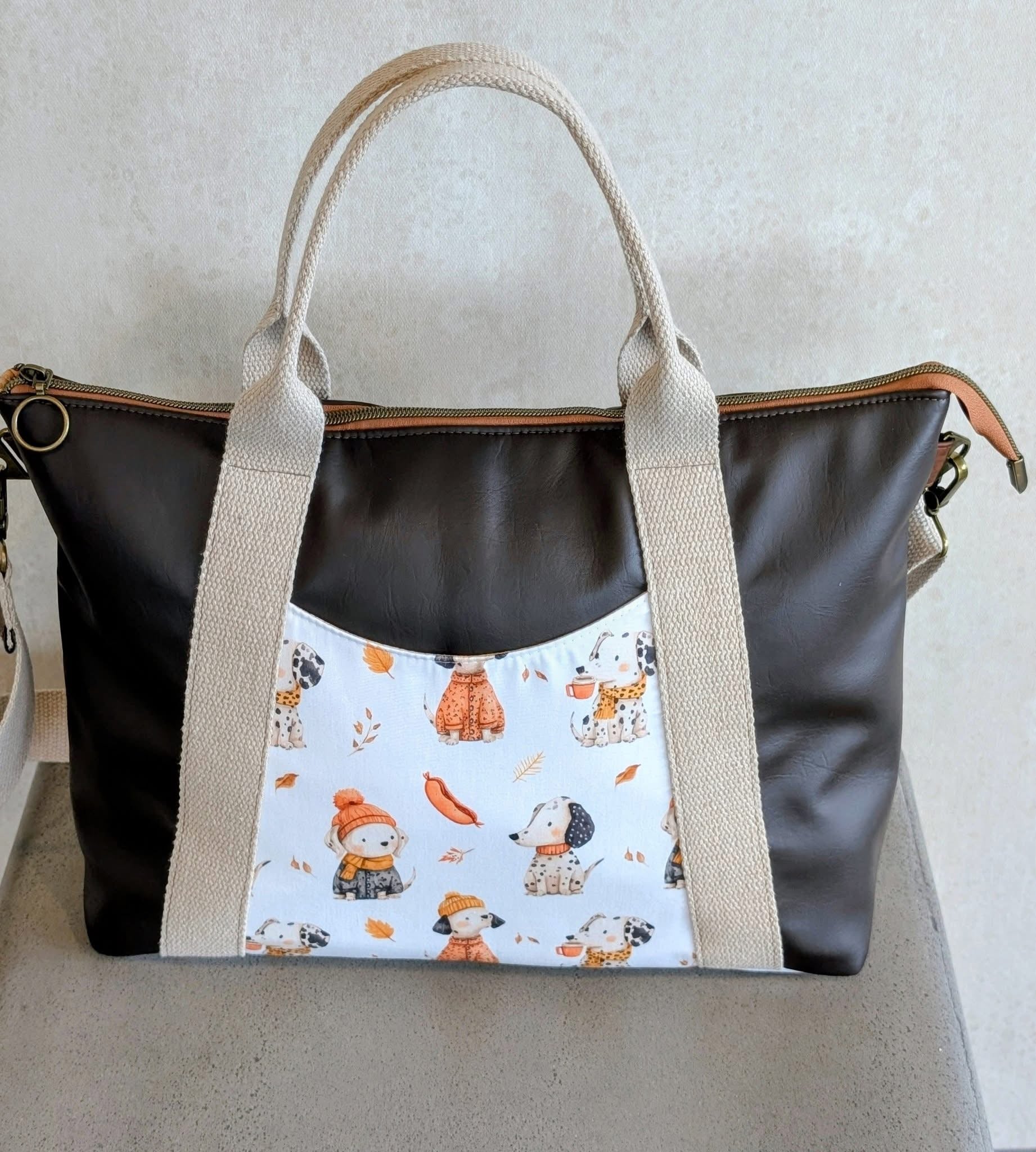 Custom printed faux leather vinyl with a smooth finish. Fabulous for purses and bags of all types and sizes. Waterproof and durable. Cuts beautifully with scissors or a rotary blade. This vinyl is very similar to cork for thickness and flexibility. A domestic machine can sew through it. While microtex needles are recommended, it was tested with universal ones with no issues. Do not pin vinyl as holes will be permanent. Instead use clips.