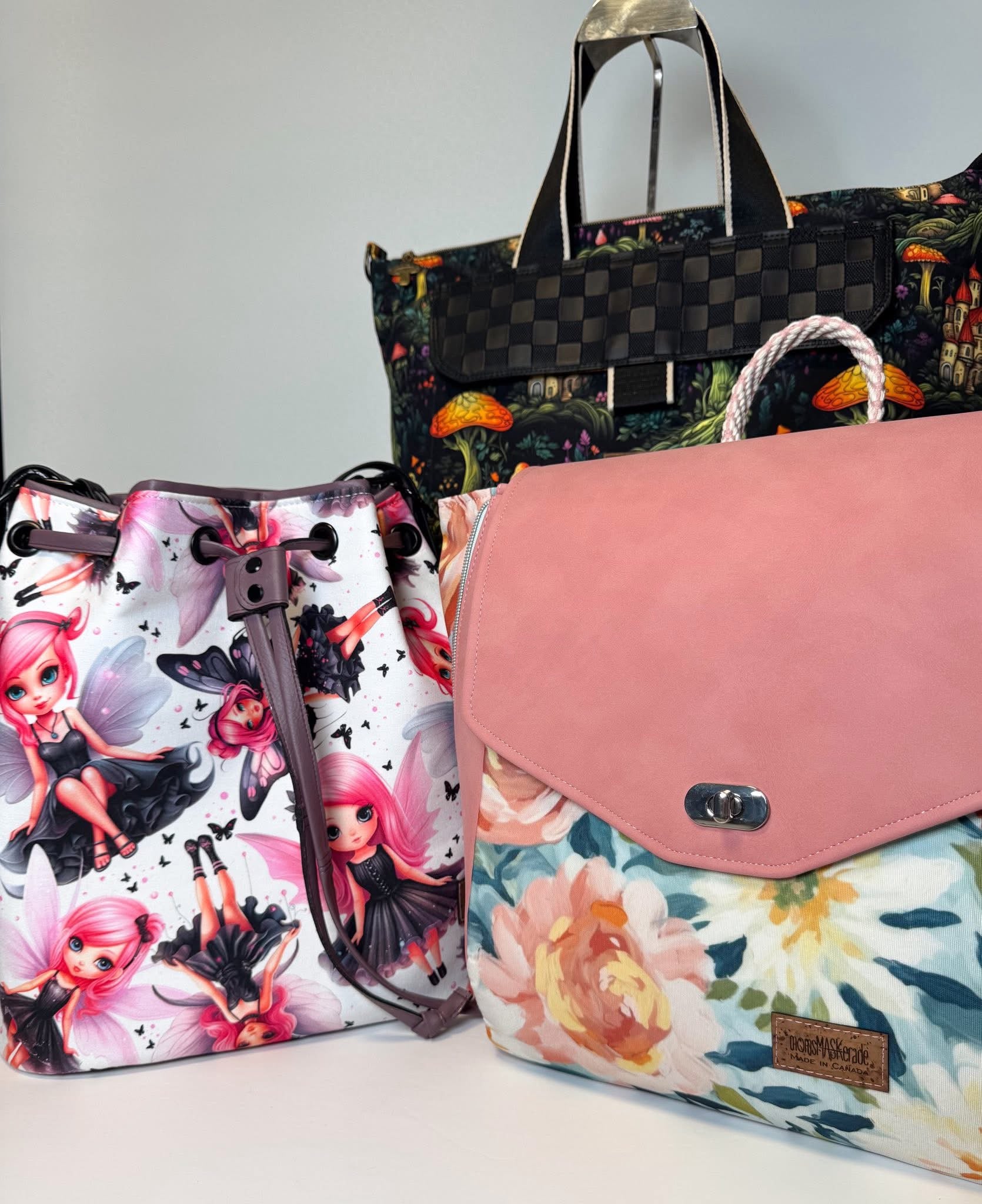 Custom printed waterproof canvas will change your bag making game. Durable for the exterior or interior of bags, this canvas is flexible and not too thick but not too thin. This is considered to be a medium weight fabric. Can be ironed just be sure to use your synthetic setting. The back of this product is white. Please do not be alarmed as this product will fray if moved around a lot. Interfacing or zigzag stitching the edges will help