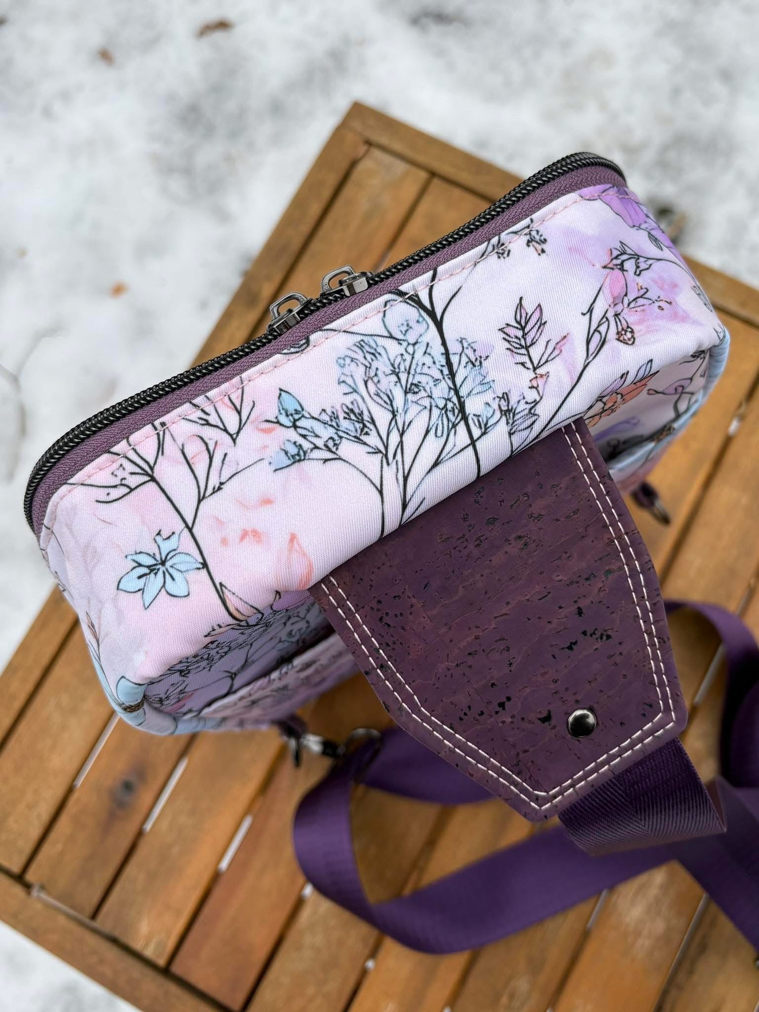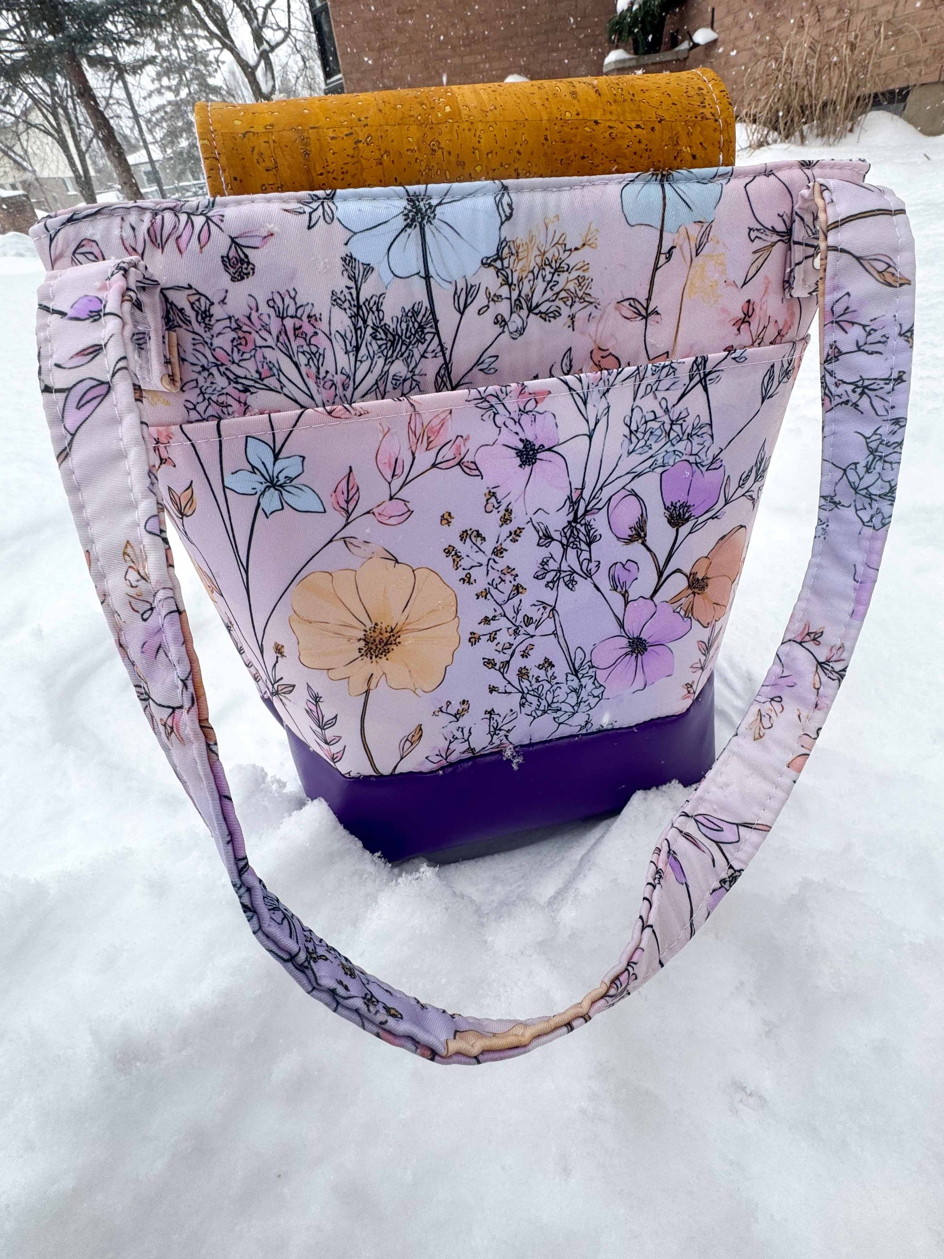 Custom printed faux leather vinyl with a smooth finish. Fabulous for purses and bags of all types and sizes. Waterproof and durable. Cuts beautifully with scissors or a rotary blade. This vinyl is very similar to cork for thickness and flexibility. A domestic machine can sew through it. While microtex needles are recommended, it was tested with universal ones with no issues. Do not pin vinyl as holes will be permanent. Instead use clips.