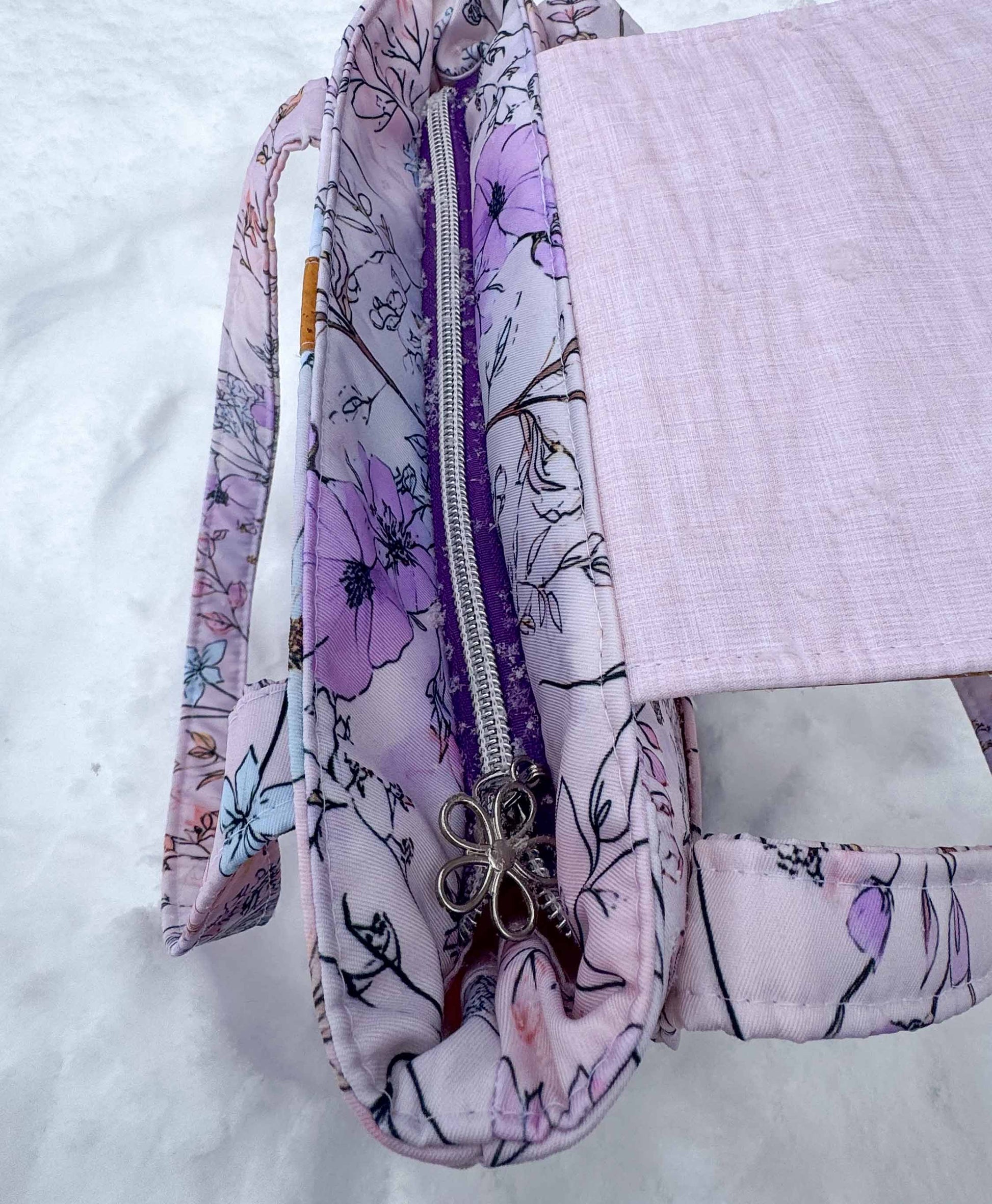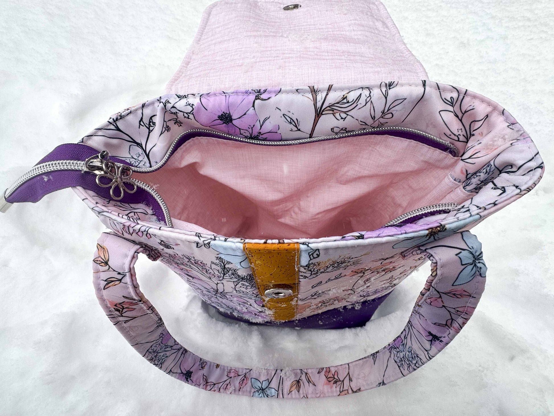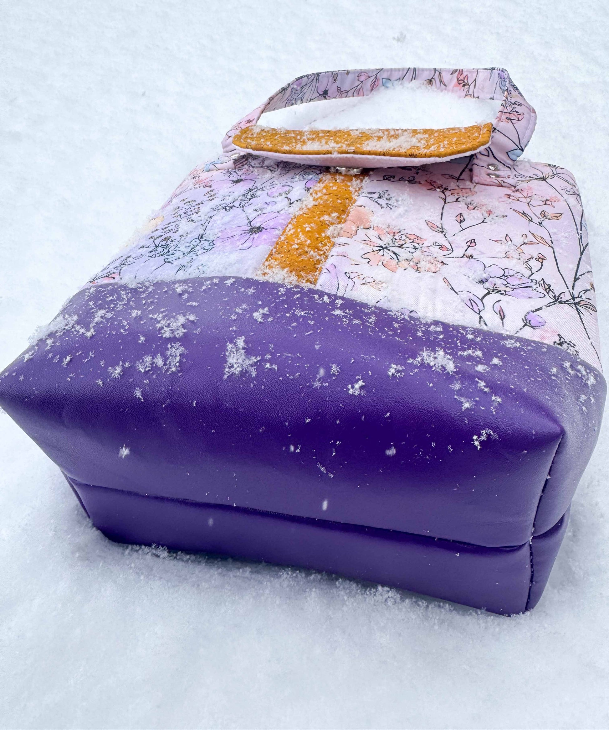 A brand new bag making base that is 100% waterproof, can be ironed and doesn’t fray. It’s lightweight and flexible. Not too thick but not too thin. Easily add interfacing, cuts with no problem and can be sewn with a universal needle and domestic machine. A bit slippery but clips hold it in place no problem. Zero stretch