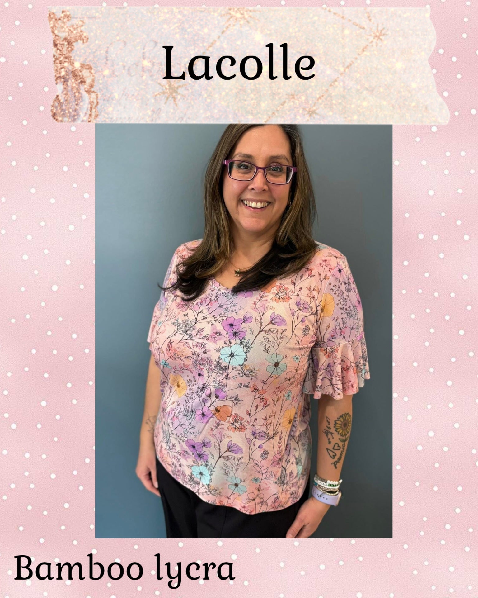 Custom printed bamboo lycra that is stretchy and super soft. Excellent drape for dresses, light for summer pjs and so much more. 70% stretch 4-way