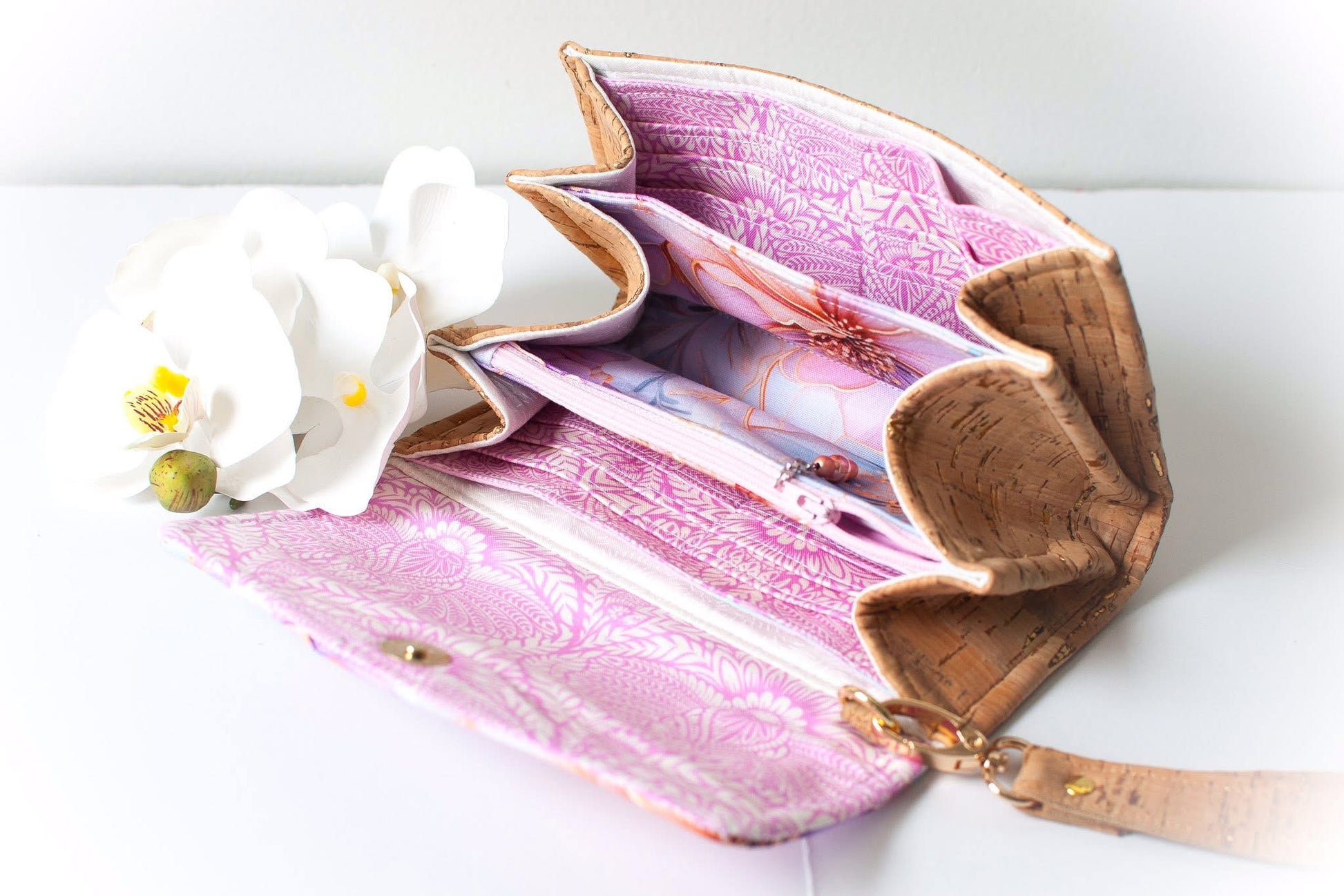 Custom printed faux leather vinyl with a smooth finish. Fabulous for purses and bags of all types and sizes. Waterproof and durable. Cuts beautifully with scissors or a rotary blade. This vinyl is very similar to cork for thickness and flexibility. A domestic machine can sew through it. While microtex needles are recommended, it was tested with universal ones with no issues. Do not pin vinyl as holes will be permanent. Instead use clips.