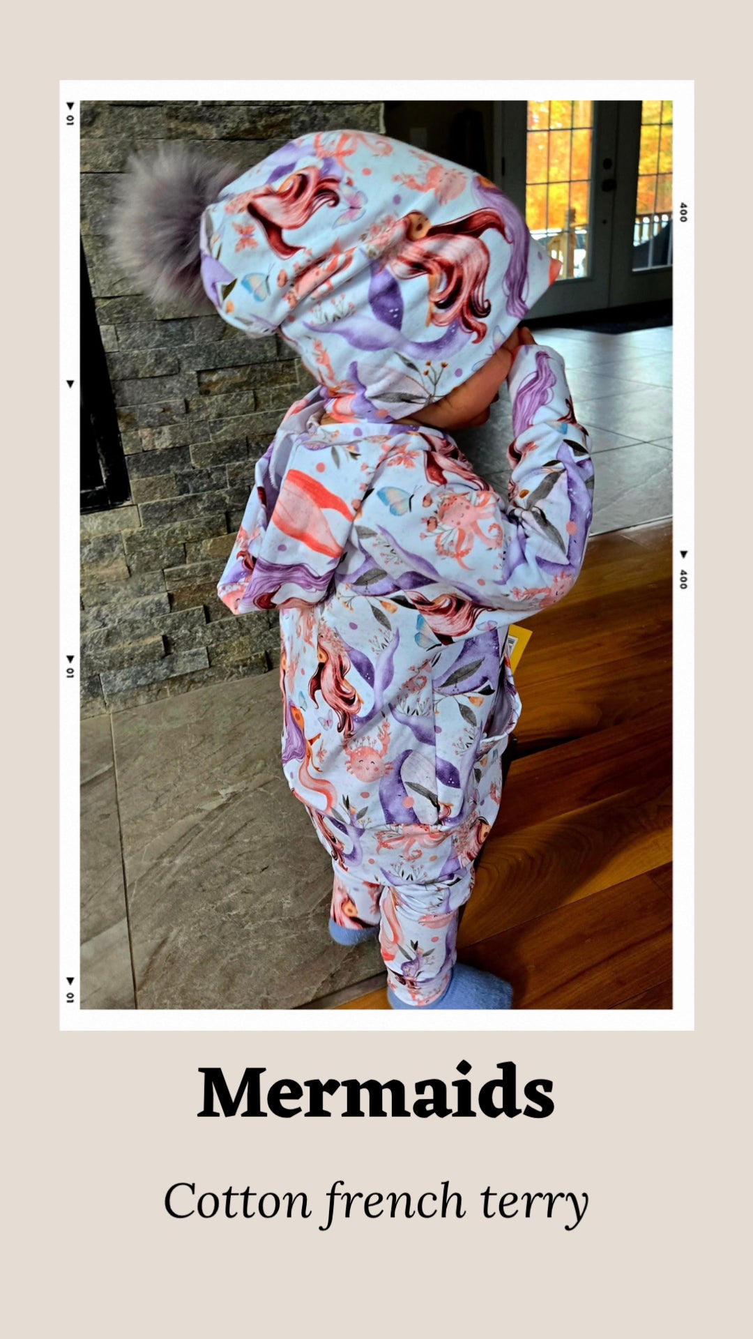 Custom printed cotton french terry is slightly thicker than bamboo french terry making is great for warmer clothing. Excellent for sweater, bathrobes, pjs and so much more. 40% stretch 4-way