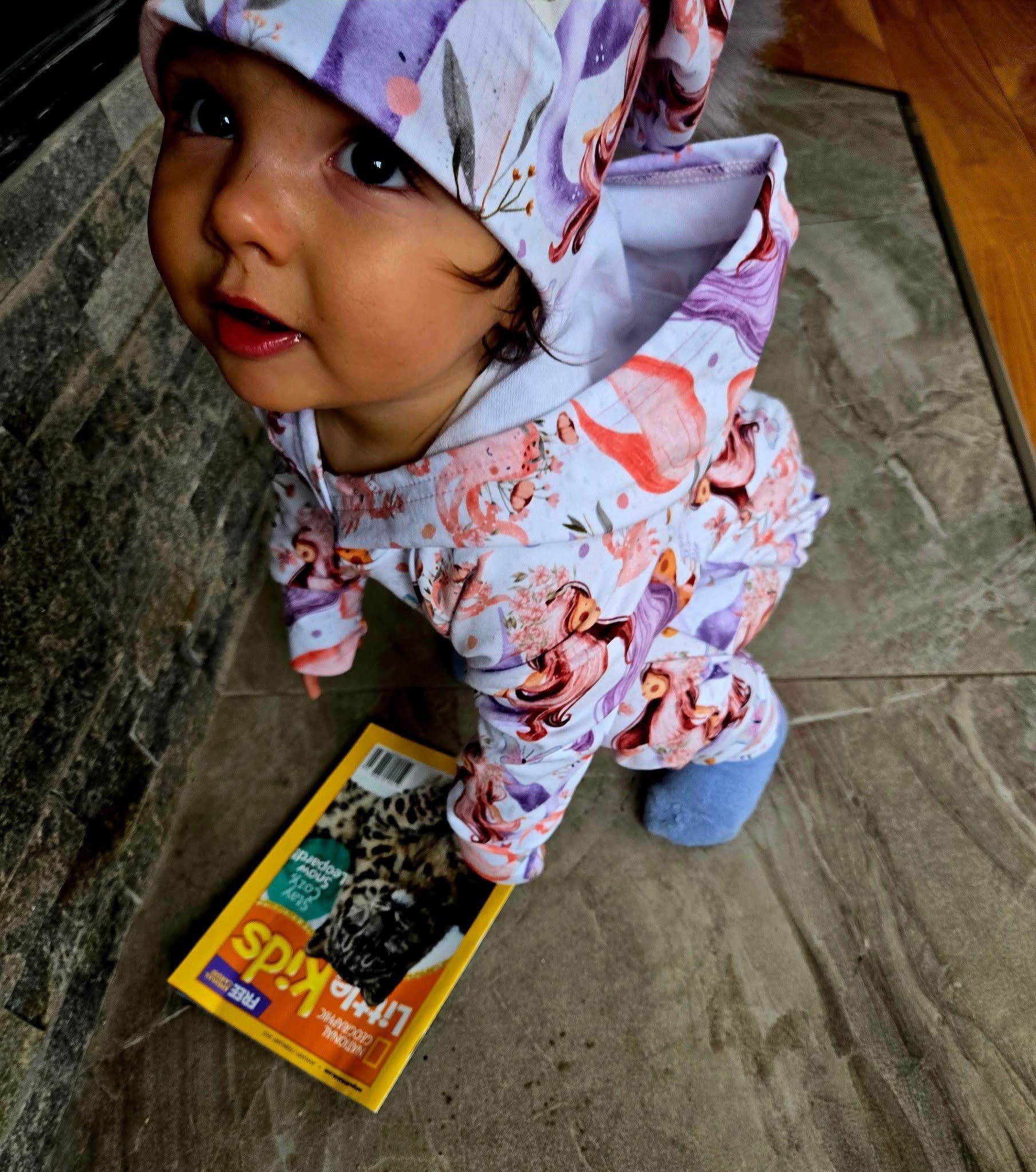 Custom printed bamboo french terry knit fabric. Perfect for a variety of clothing options it is very soft and easy to work with. 40% stretch, 4-way