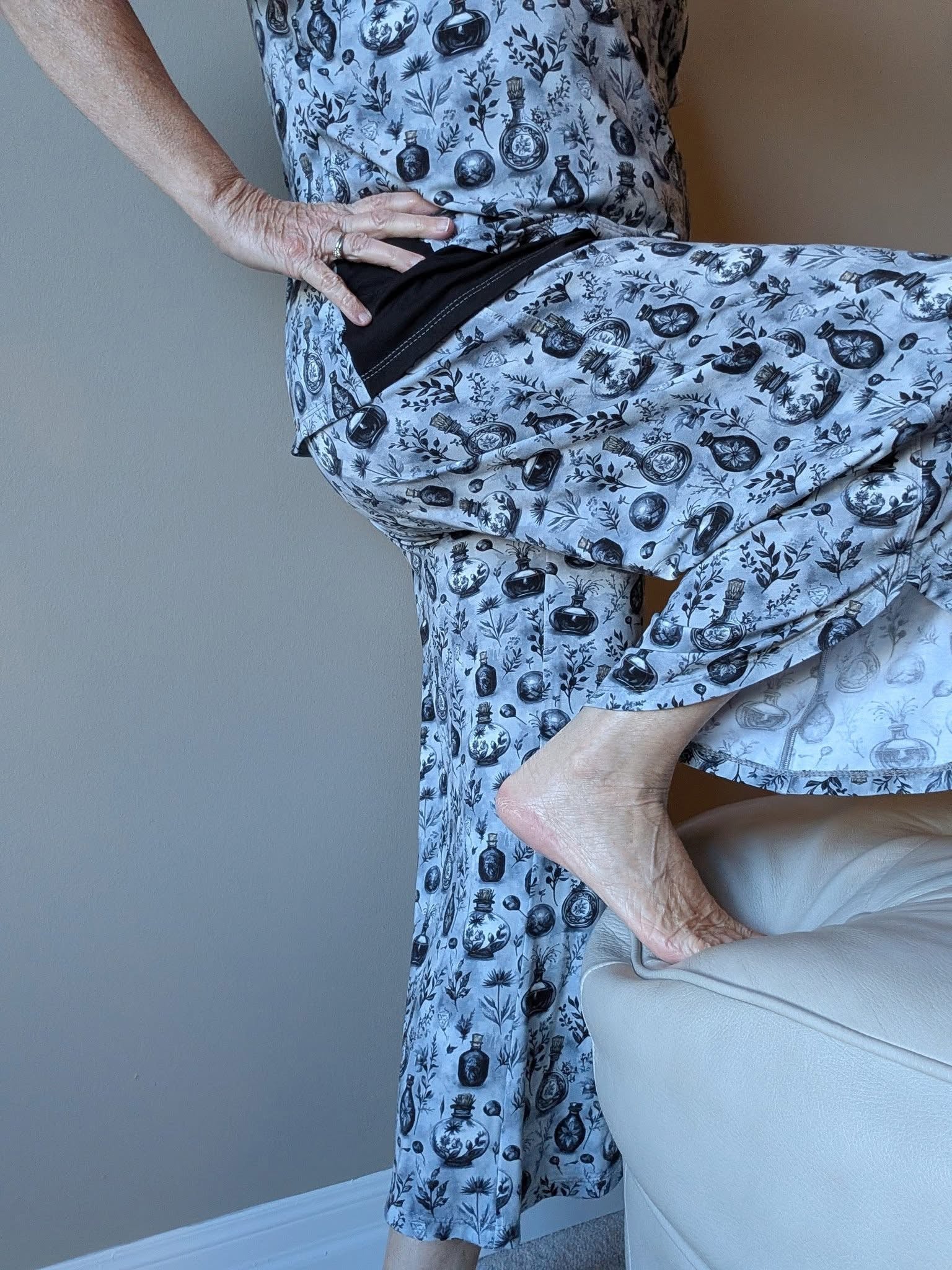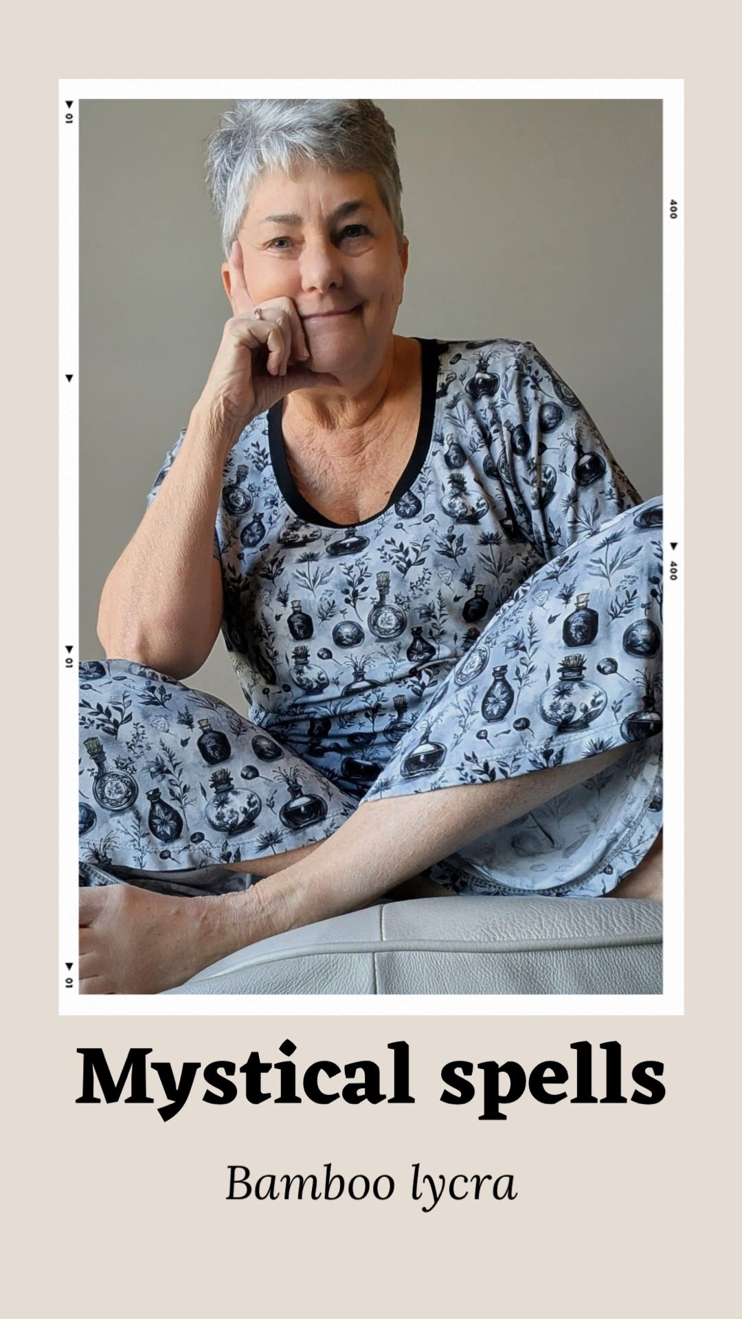 Custom printed bamboo lycra that is stretchy and super soft. Excellent drape for dresses, light for summer pjs and so much more. 70% stretch 4-way
