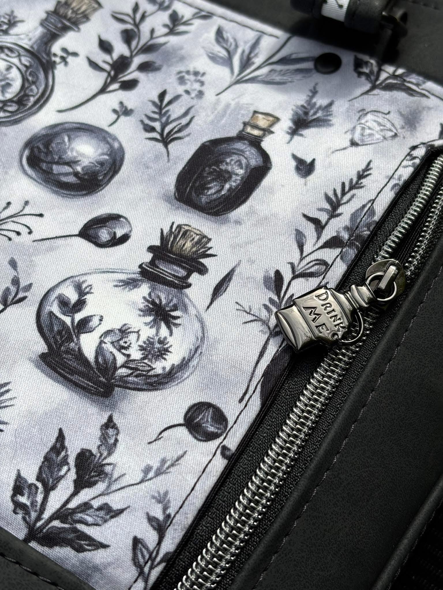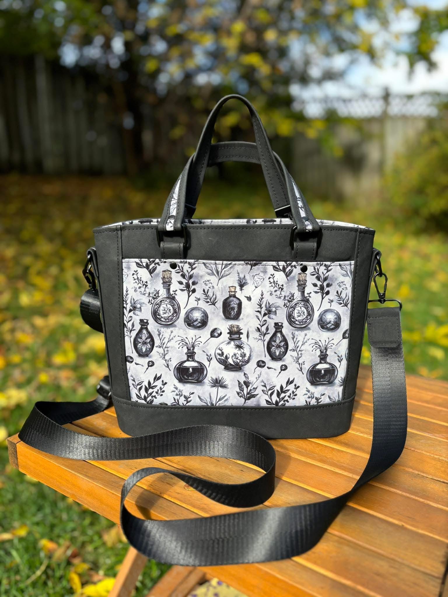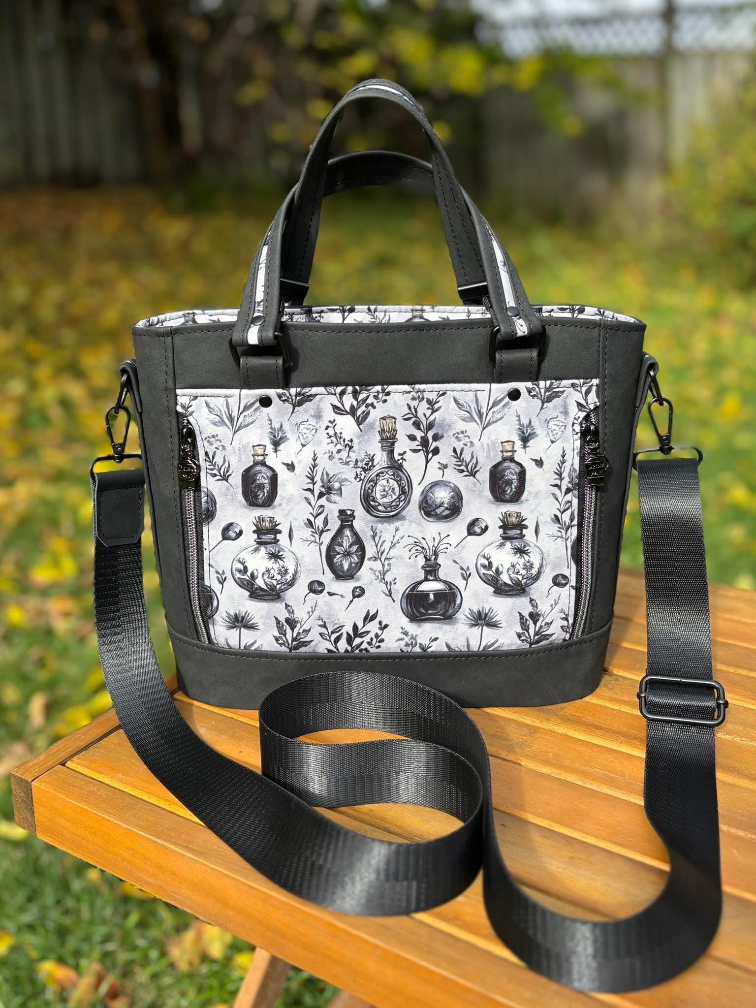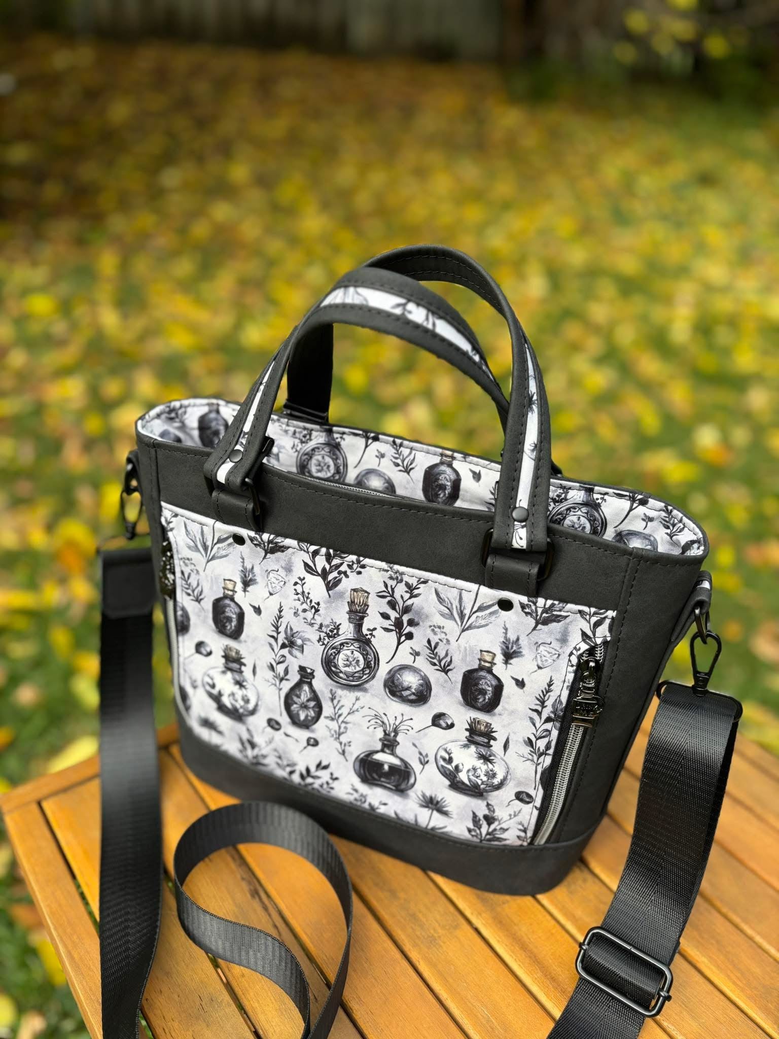 Custom printed faux leather vinyl with a smooth finish. Fabulous for purses and bags of all types and sizes. Waterproof and durable. Cuts beautifully with scissors or a rotary blade. This vinyl is very similar to cork for thickness and flexibility. A domestic machine can sew through it. While microtex needles are recommended, it was tested with universal ones with no issues. Do not pin vinyl as holes will be permanent. Instead use clips.