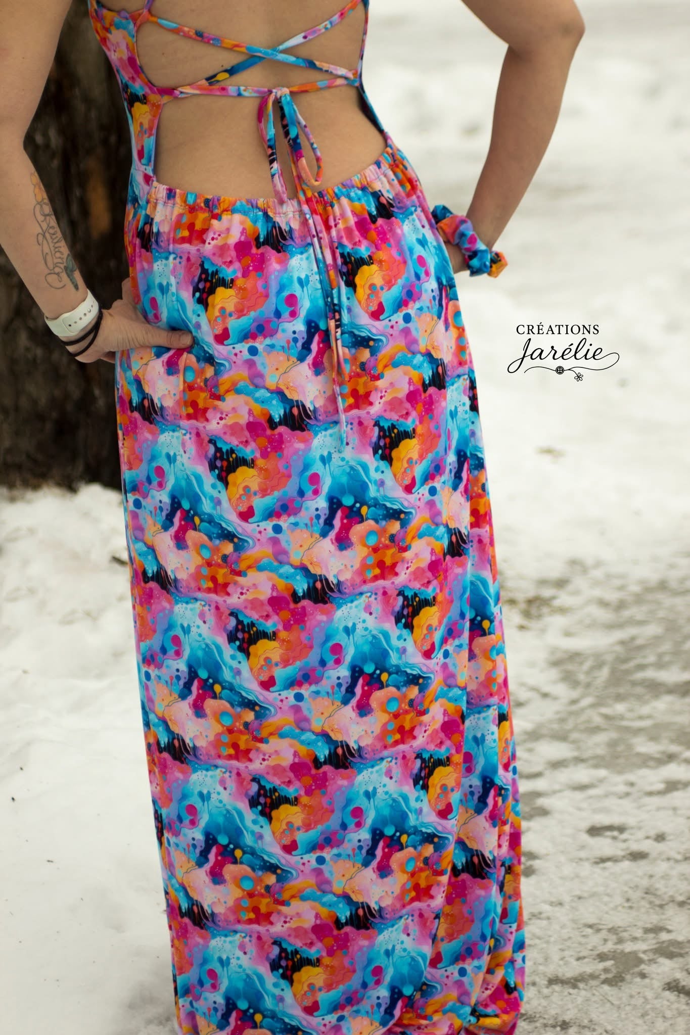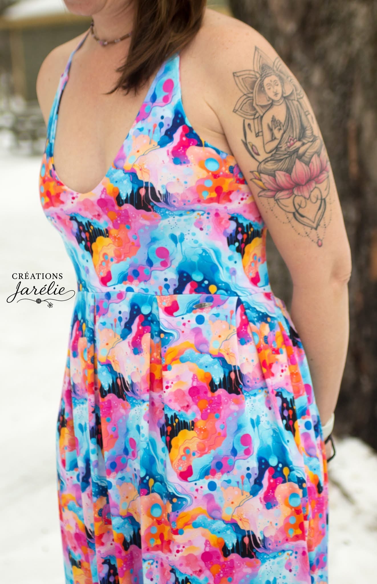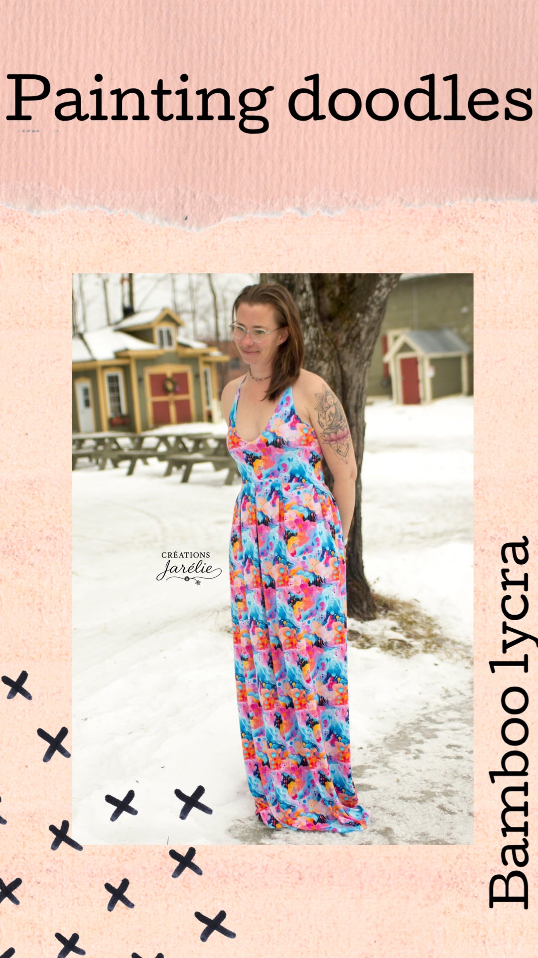 Custom printed bamboo lycra that is stretchy and super soft. Excellent drape for dresses, light for summer pjs and so much more. 70% stretch 4-way