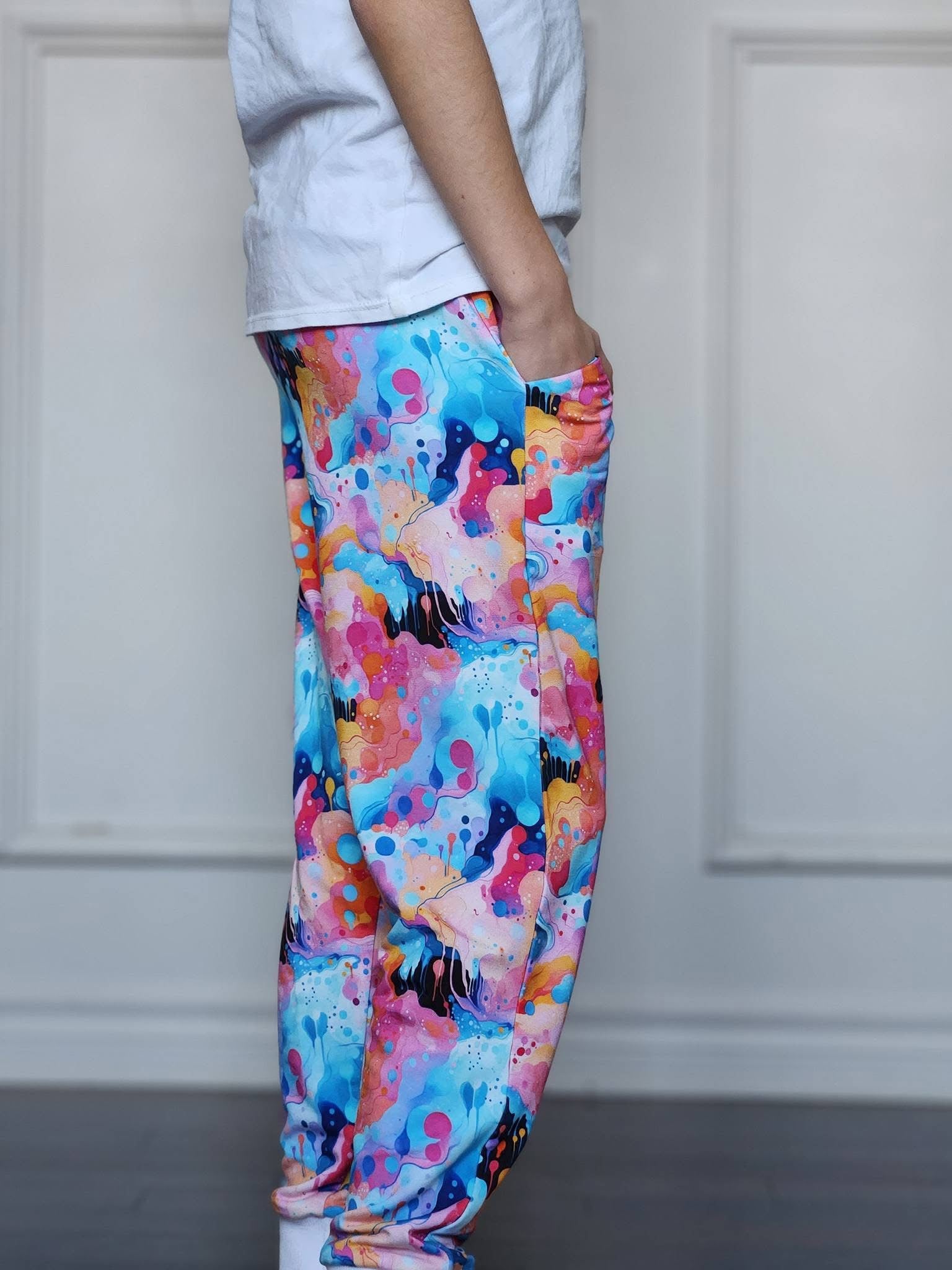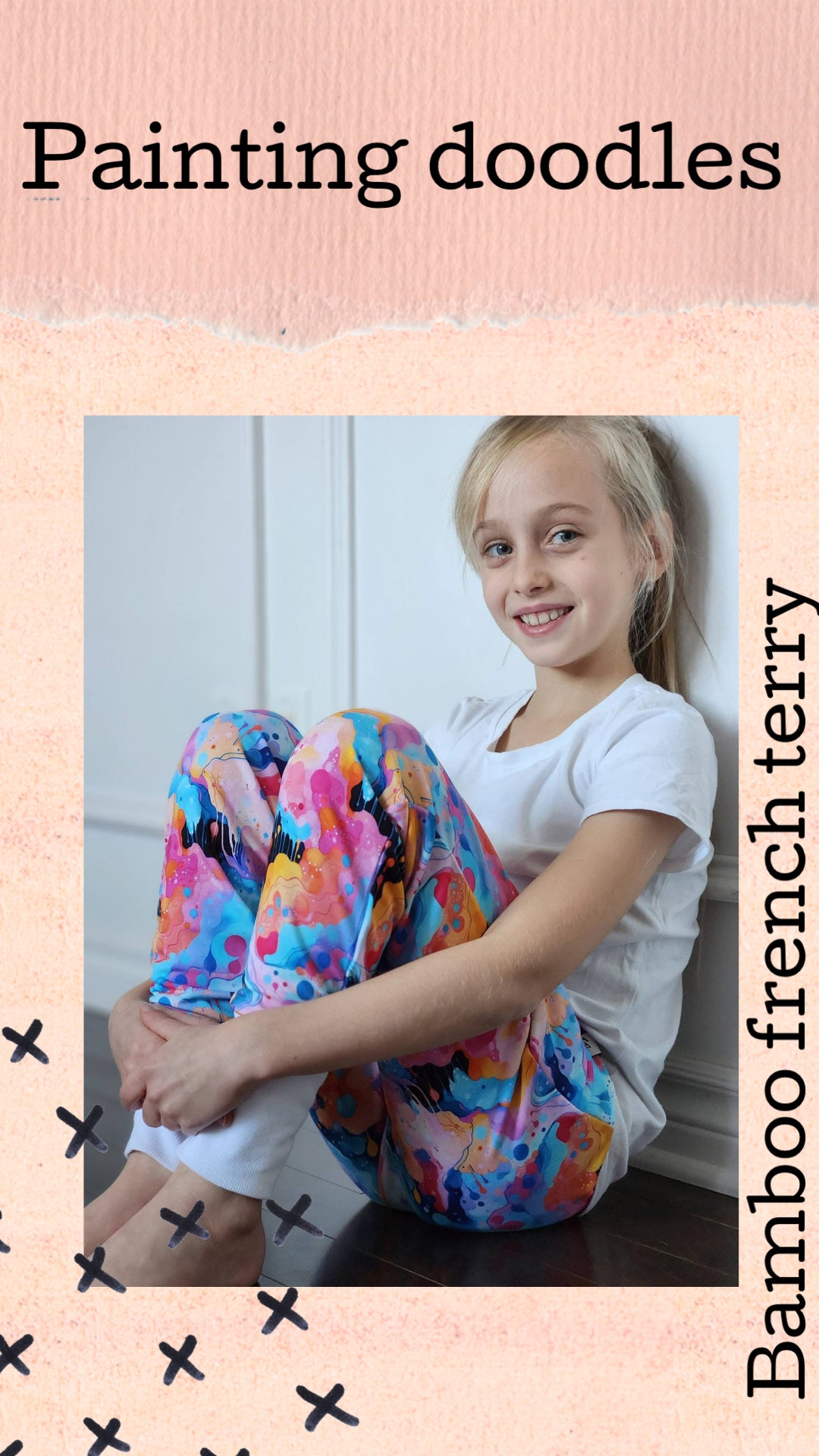Custom printed bamboo french terry knit fabric. Perfect for a variety of clothing options it is very soft and easy to work with. 40% stretch, 4-way