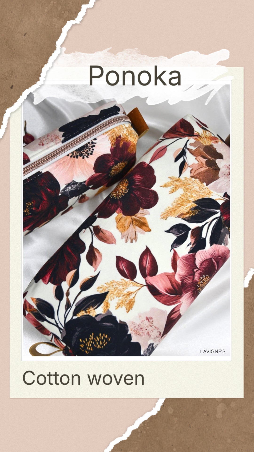 Custom printed cotton woven fabric. Gorgeous fabric for all your bag making needs while being soft and drapey enough for quilts or clothing. This is considered to be a light weight fabric. Zero stretch
