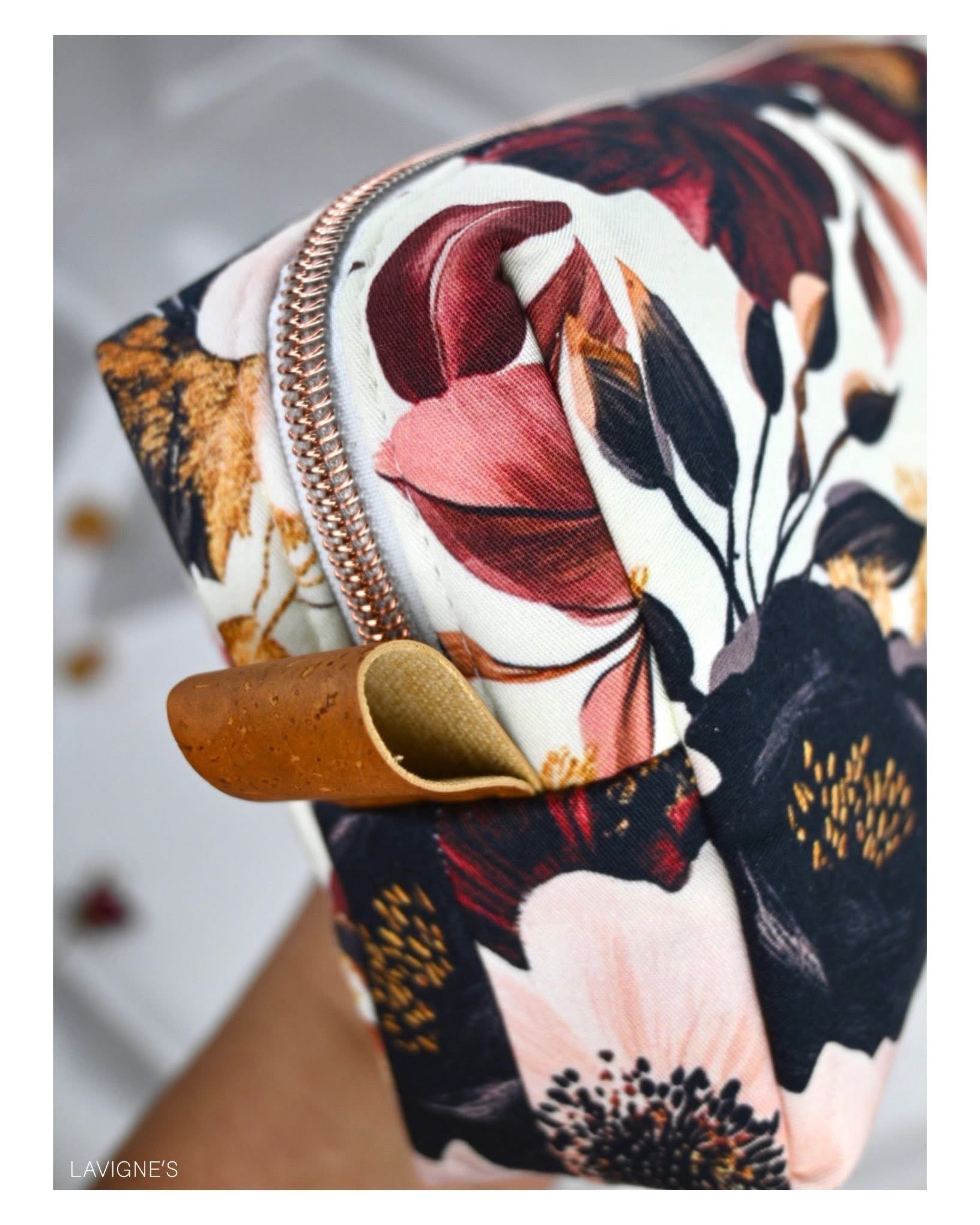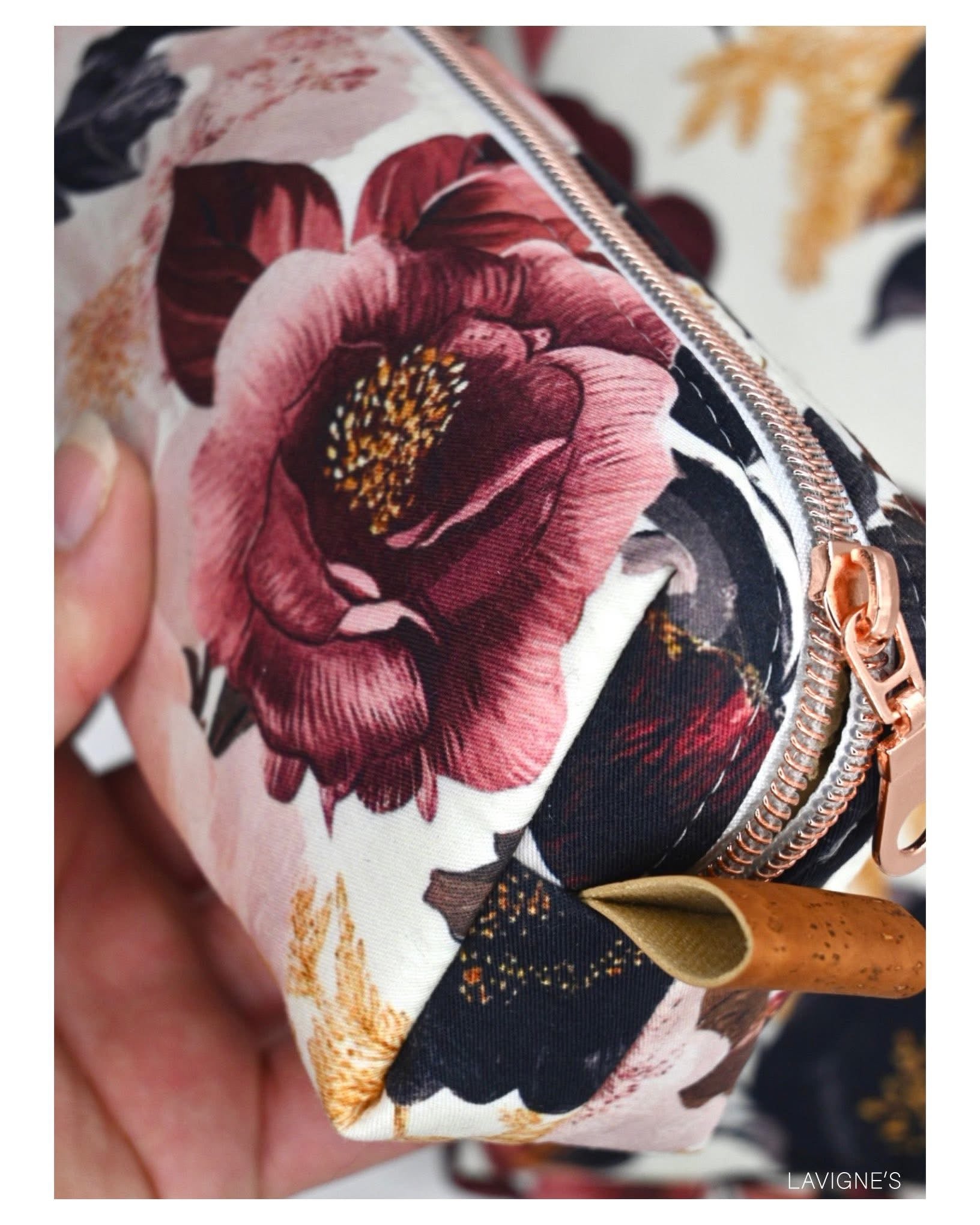 Custom printed faux leather vinyl with a smooth finish. Fabulous for purses and bags of all types and sizes. Waterproof and durable. Cuts beautifully with scissors or a rotary blade. This vinyl is very similar to cork for thickness and flexibility. A domestic machine can sew through it. While microtex needles are recommended, it was tested with universal ones with no issues. Do not pin vinyl as holes will be permanent. Instead use clips.