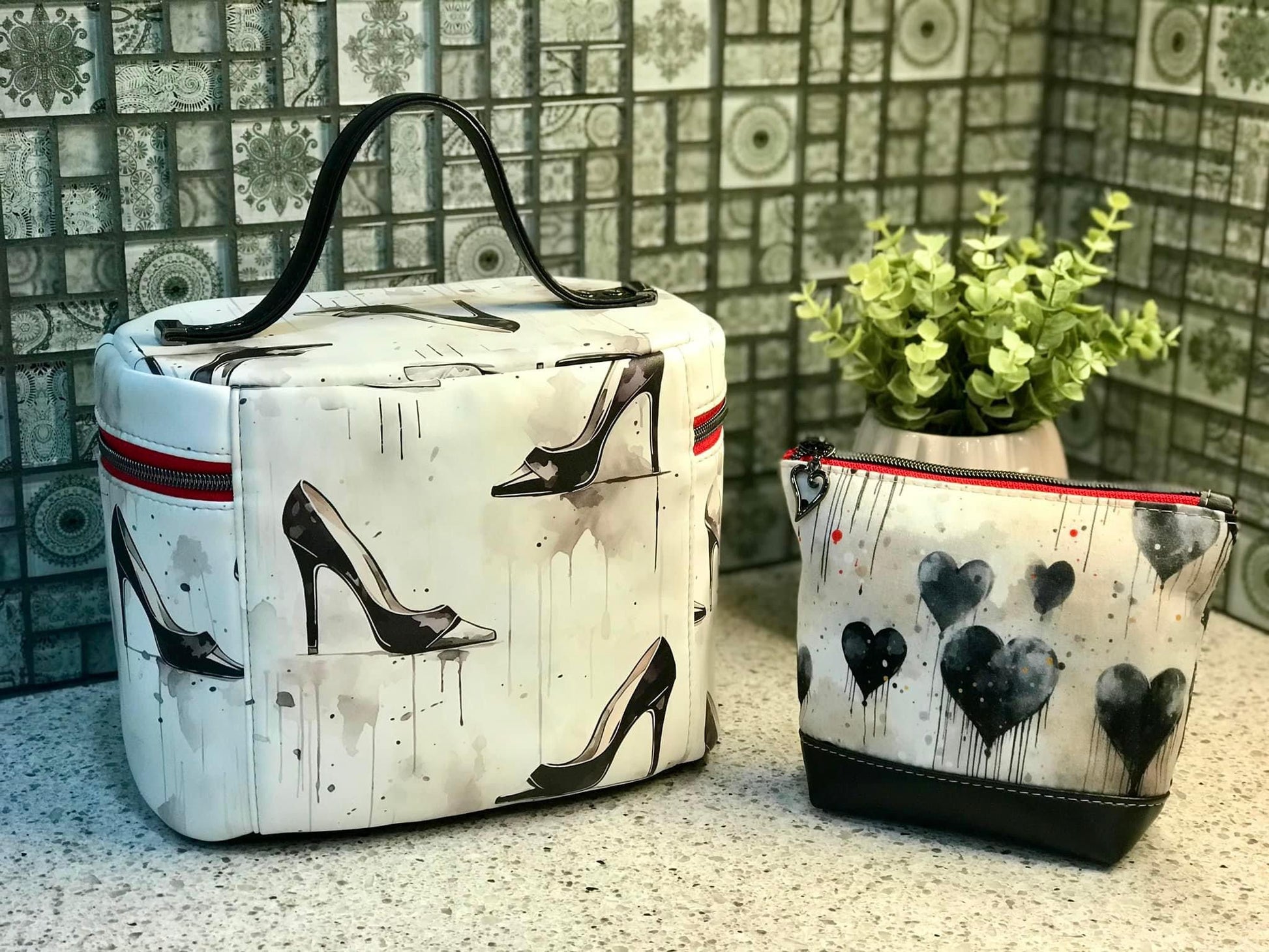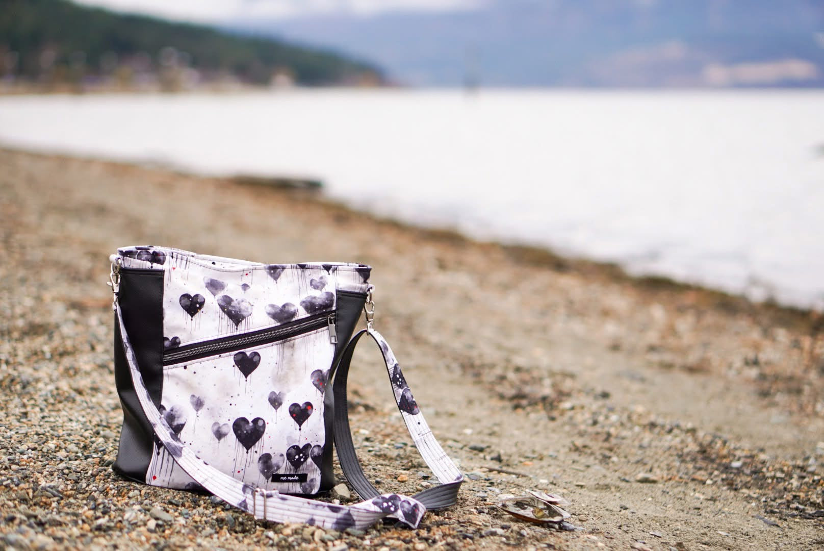 Custom printed faux leather vinyl with a smooth finish. Fabulous for purses and bags of all types and sizes. Waterproof and durable. Cuts beautifully with scissors or a rotary blade. This vinyl is very similar to cork for thickness and flexibility. A domestic machine can sew through it. While microtex needles are recommended, it was tested with universal ones with no issues. Do not pin vinyl as holes will be permanent. Instead use clips.