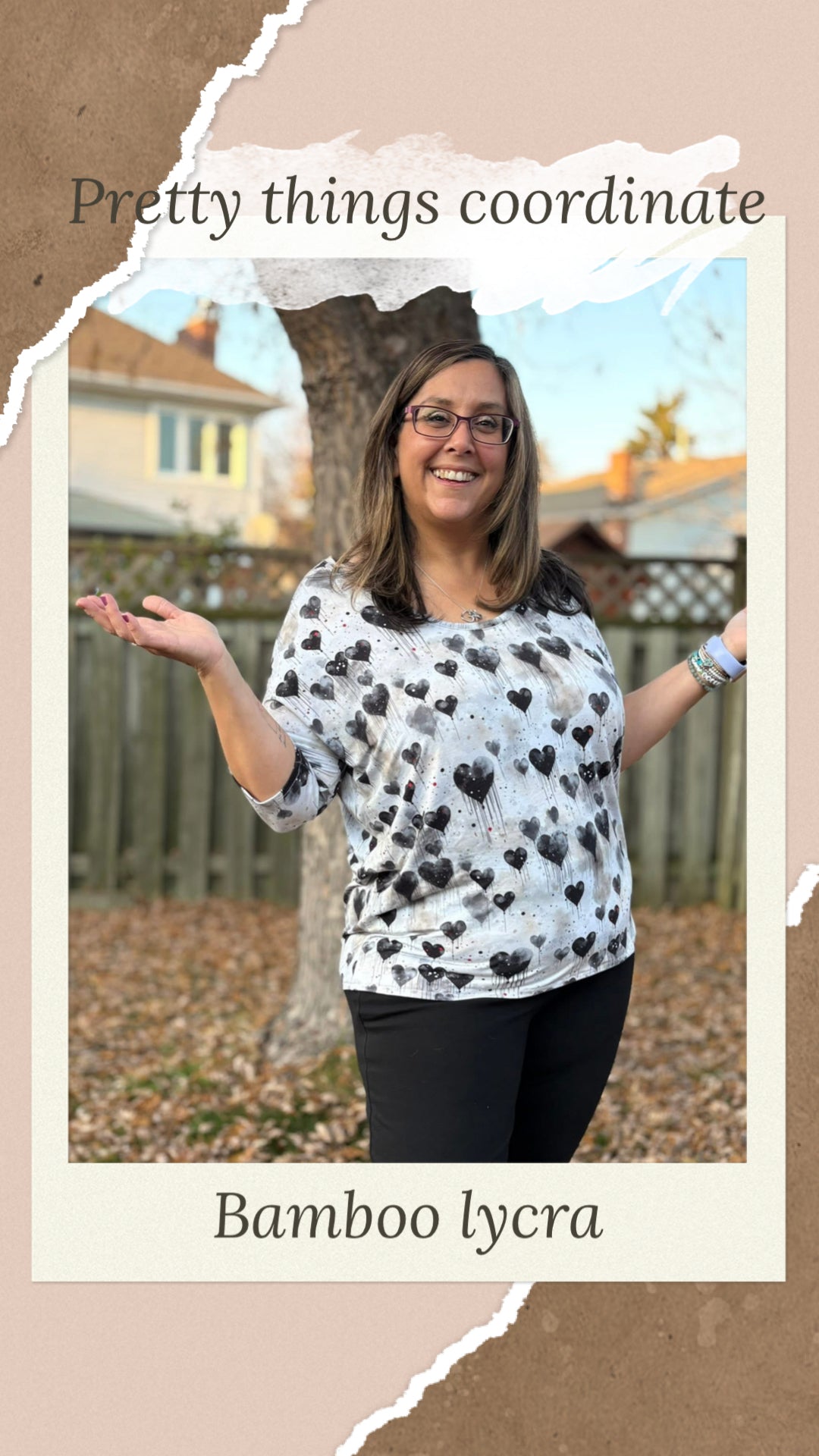 Custom printed bamboo lycra that is stretchy and super soft. Excellent drape for dresses, light for summer pjs and so much more. 70% stretch 4-way
