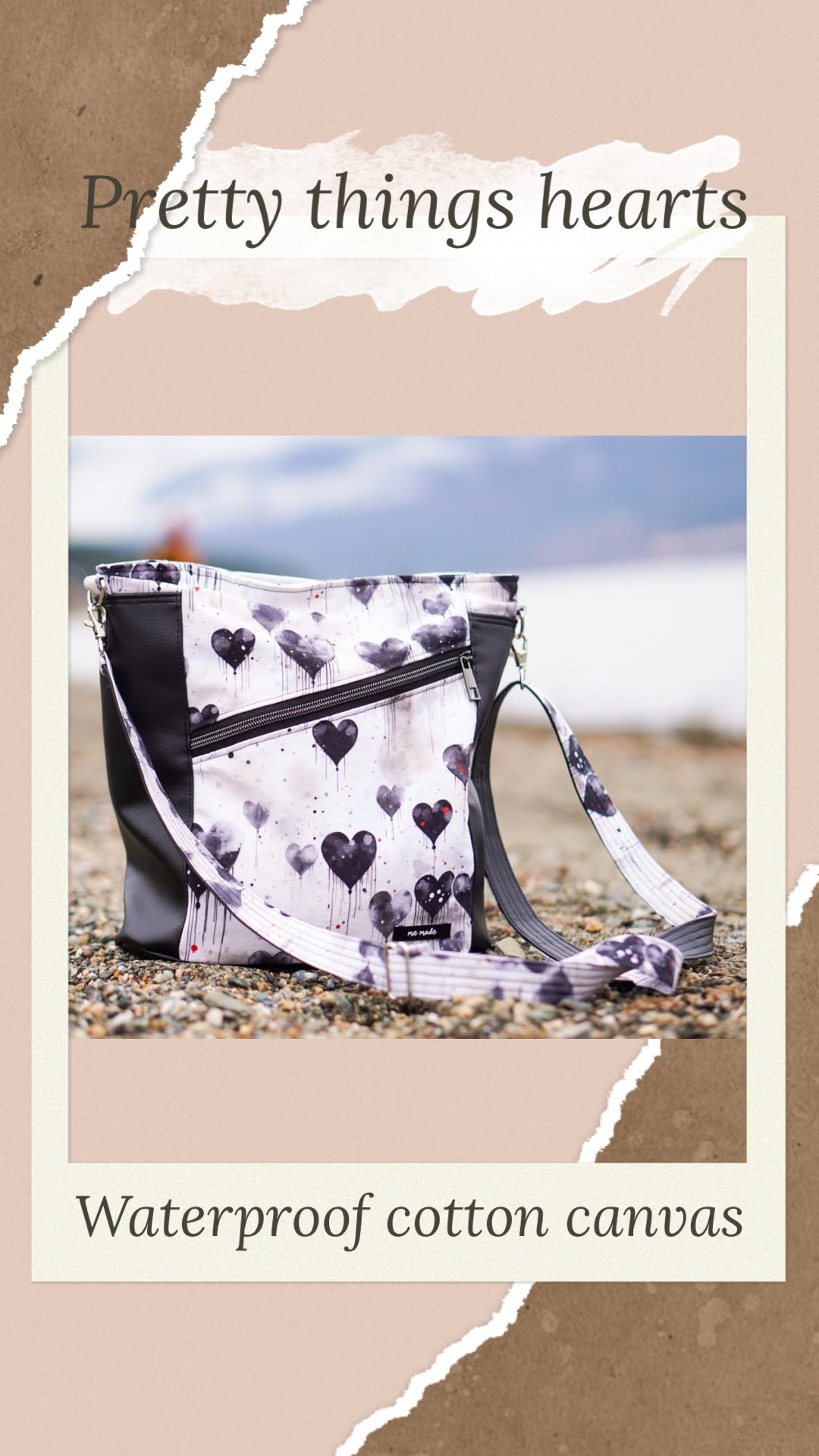 It's a mash up of 2 of the favourite bag bases: waterproof canvas and cotton canvas. This is a fabulous base that is easily pliable and the same thickness as cotton canvas. No coating on the back as the waterproof element is part of the interior weave. And best part little to no fraying. Zero stretch