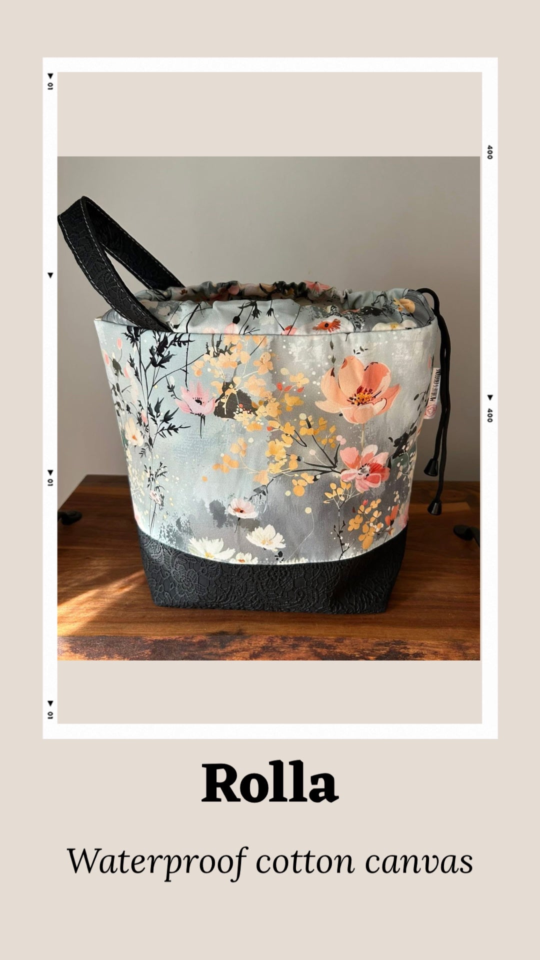 It's a mash up of 2 of the favourite bag bases: waterproof canvas and cotton canvas. This is a fabulous base that is easily pliable and the same thickness as cotton canvas. No coating on the back as the waterproof element is part of the interior weave. And best part little to no fraying. Zero stretch