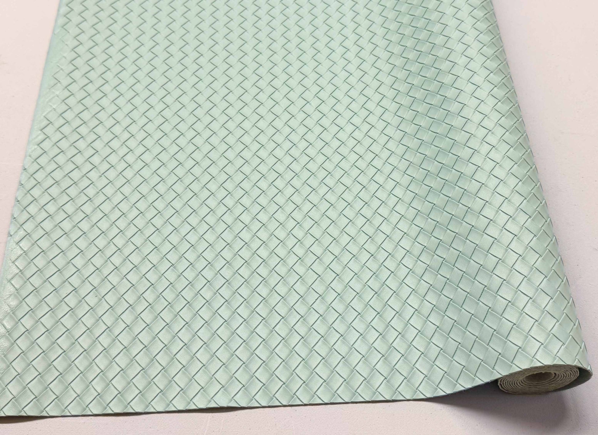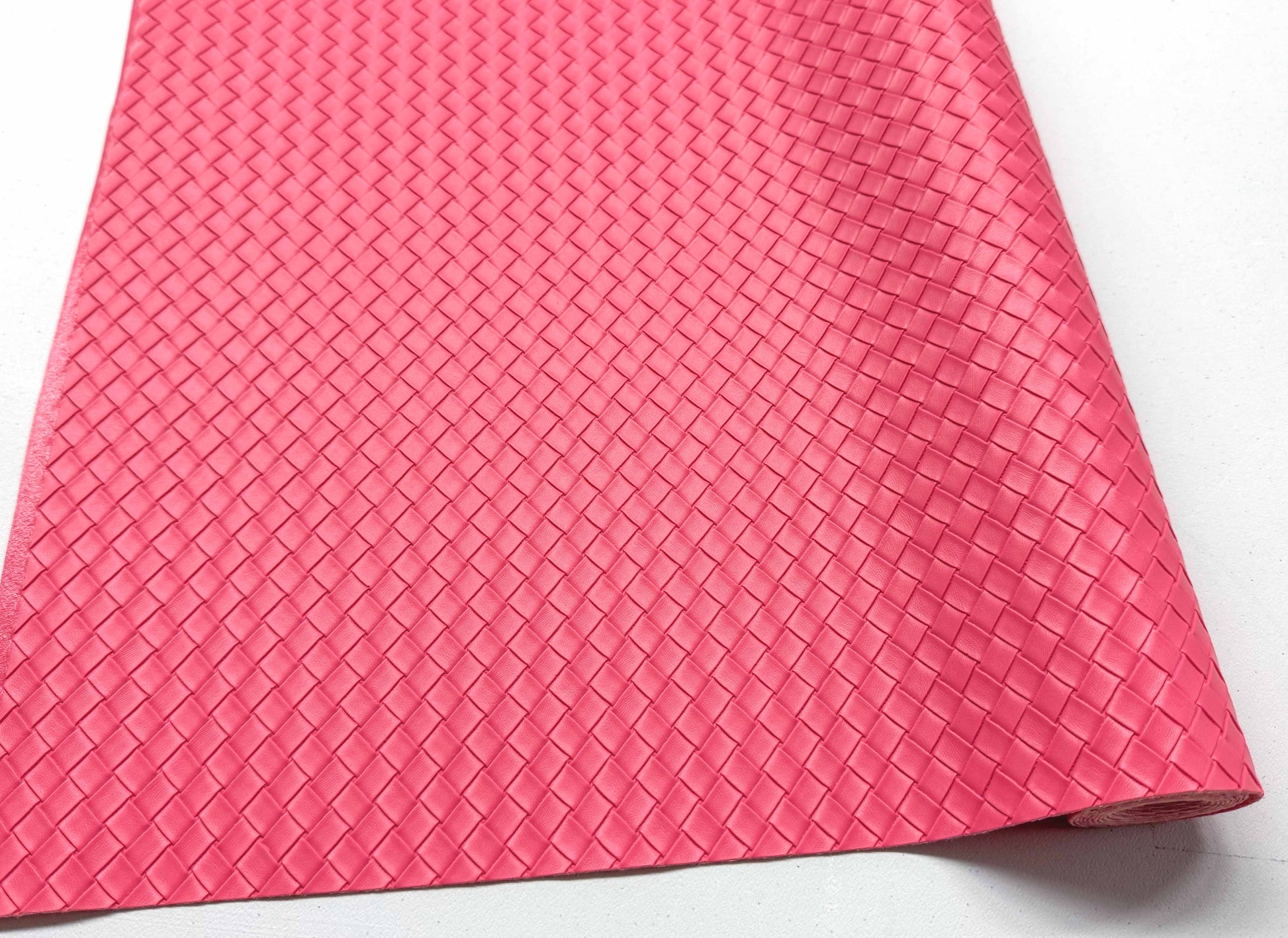 Small basket weave faux leather vinyl with a textured/embossed weave design on the front and a woven backing. Fabulous for purses and bags of all types and sizes. Waterproof and durable. Cuts beautifully with scissors or a rotary blade. This vinyl is slightly thinner than the custom printed vinyl and more flexile. A domestic machine can sew through it. While microtex needles are recommended, it was tested with universal ones with no issues. Do not pin vinyl as holes will be permanent. Instead use clips.
