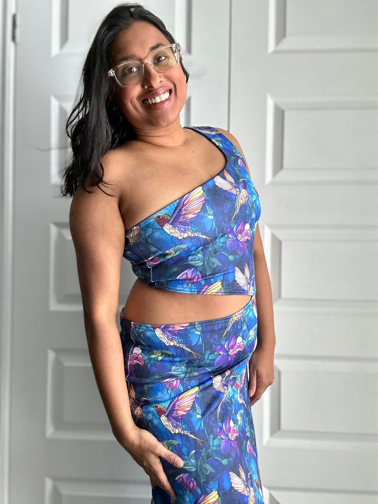 Custom printed bamboo lycra that is stretchy and super soft. Excellent drape for dresses, light for summer pjs and so much more. 70% stretch 4-way