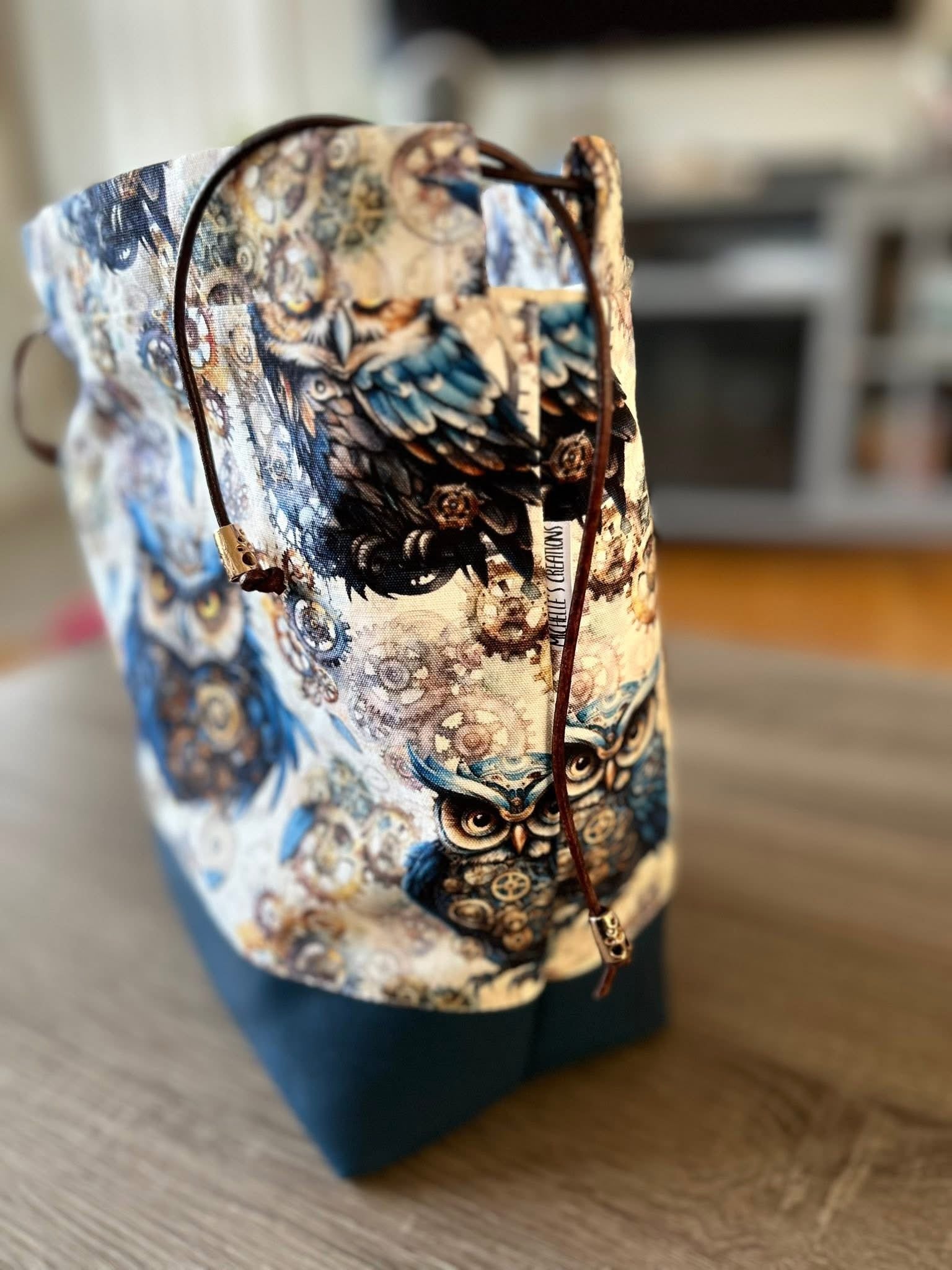 Custom printed faux leather vinyl with a smooth finish. Fabulous for purses and bags of all types and sizes. Waterproof and durable. Cuts beautifully with scissors or a rotary blade. This vinyl is very similar to cork for thickness and flexibility. A domestic machine can sew through it. While microtex needles are recommended, it was tested with universal ones with no issues. Do not pin vinyl as holes will be permanent. Instead use clips.