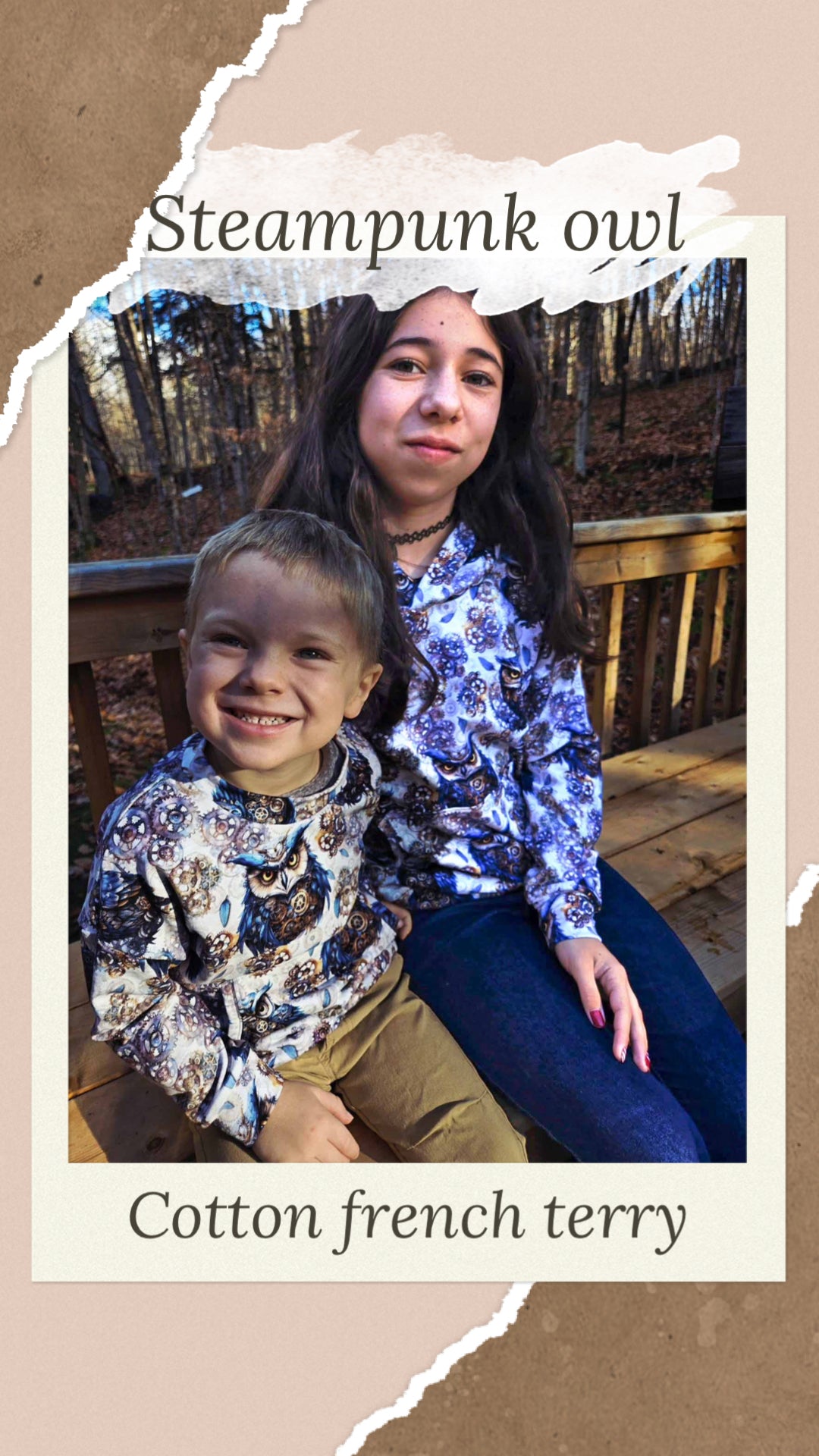 Custom printed cotton french terry is slightly thicker than bamboo french terry making is great for warmer clothing. Excellent for sweater, bathrobes, pjs and so much more. 40% stretch 4-way