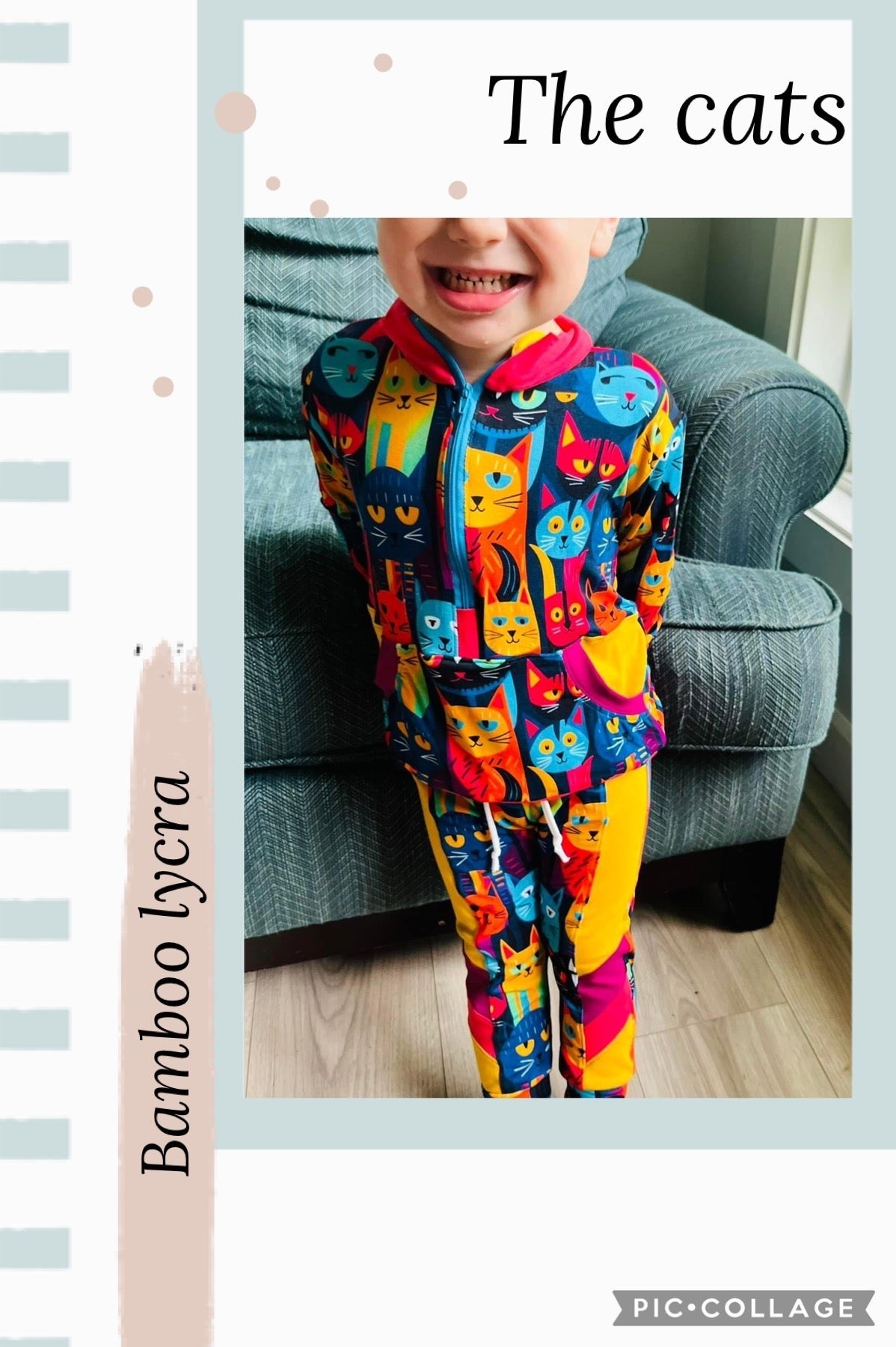 Custom printed bamboo lycra that is stretchy and super soft. Excellent drape for dresses, light for summer pjs and so much more. 70% stretch 4-way