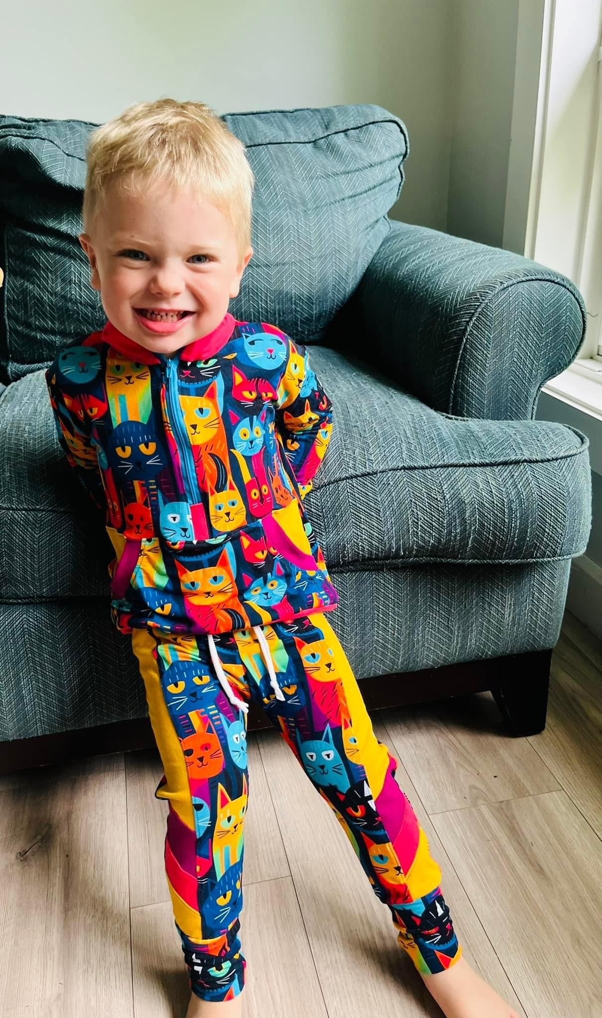 Custom printed bamboo french terry knit fabric. Perfect for a variety of clothing options it is very soft and easy to work with. 40% stretch, 4-way