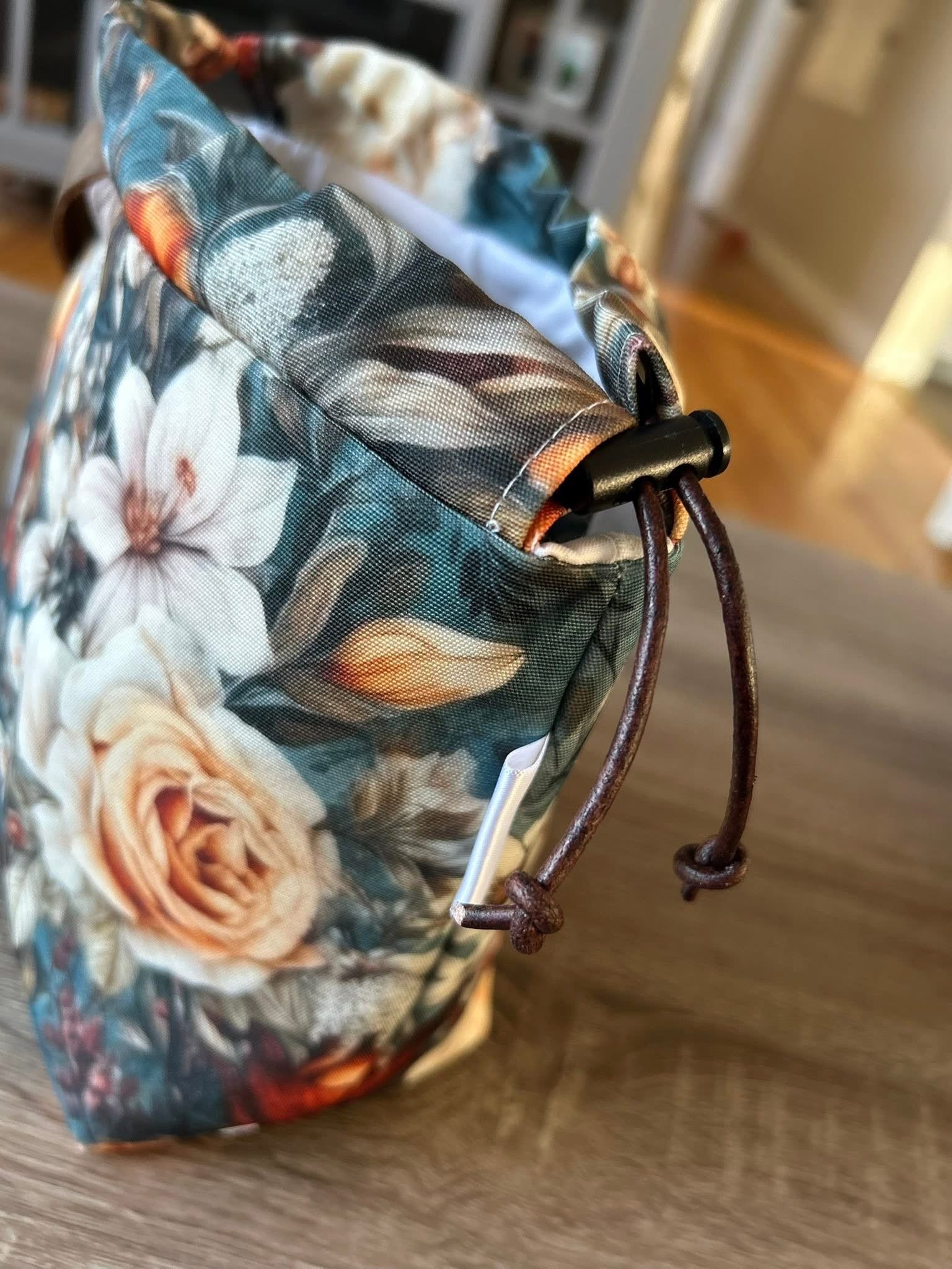 Custom printed faux leather vinyl with a smooth finish. Fabulous for purses and bags of all types and sizes. Waterproof and durable. Cuts beautifully with scissors or a rotary blade. This vinyl is very similar to cork for thickness and flexibility. A domestic machine can sew through it. While microtex needles are recommended, it was tested with universal ones with no issues. Do not pin vinyl as holes will be permanent. Instead use clips.